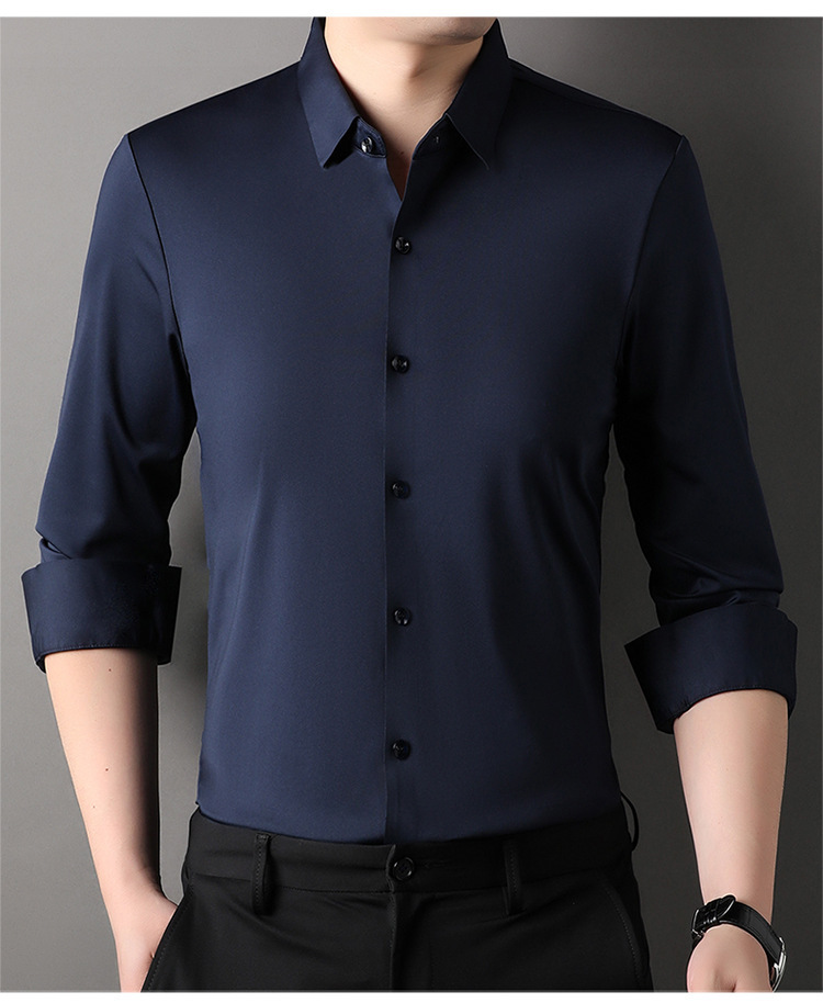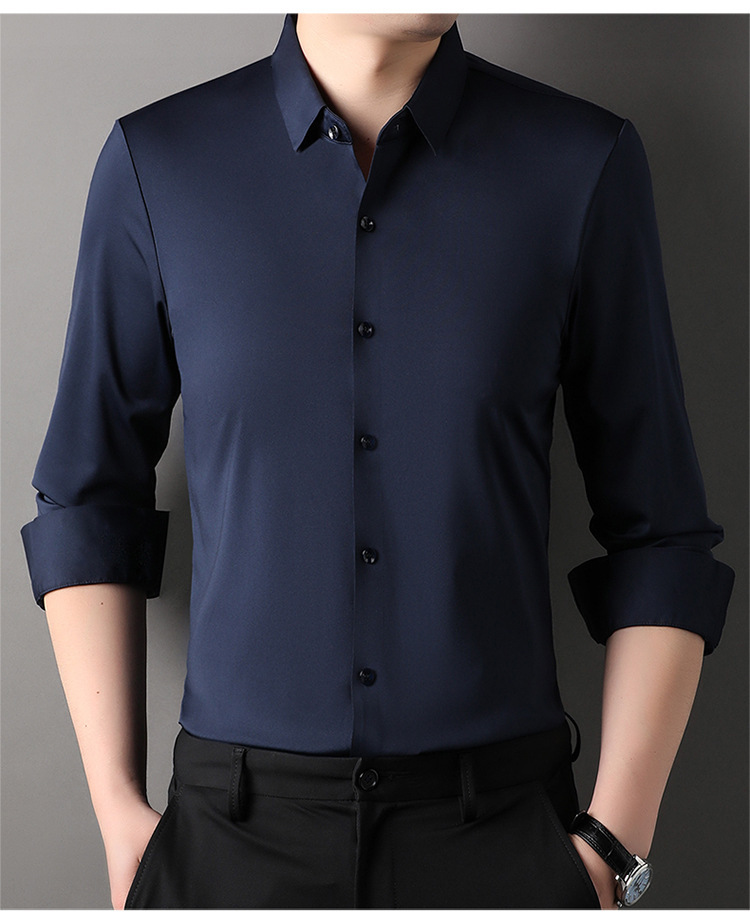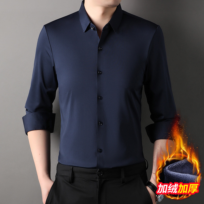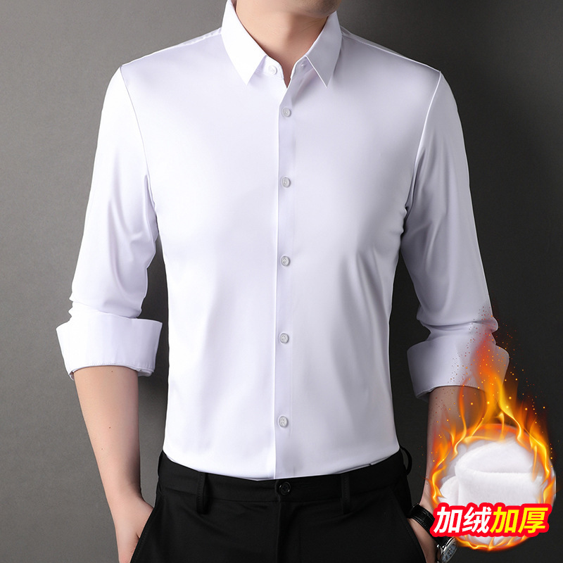 无痕衬衫男冬款加绒加厚保暖商务正装男士高级感弹力修身