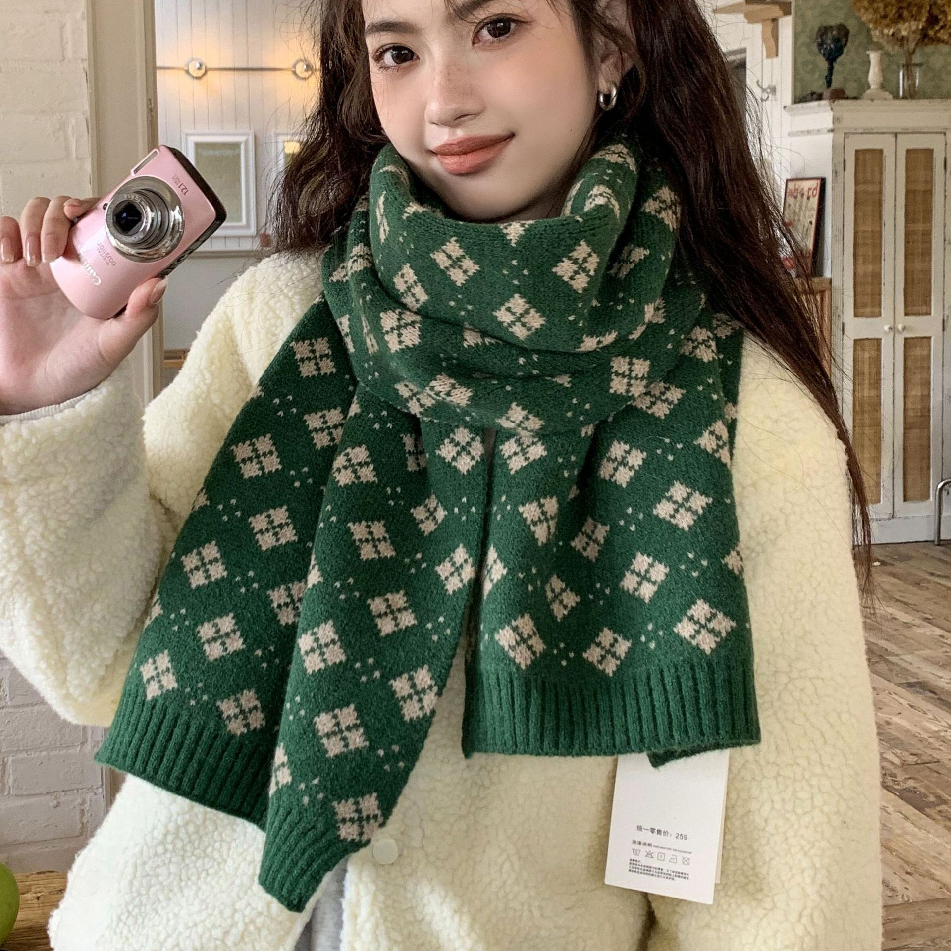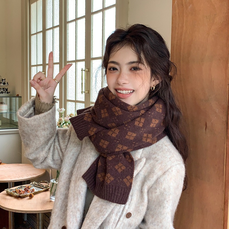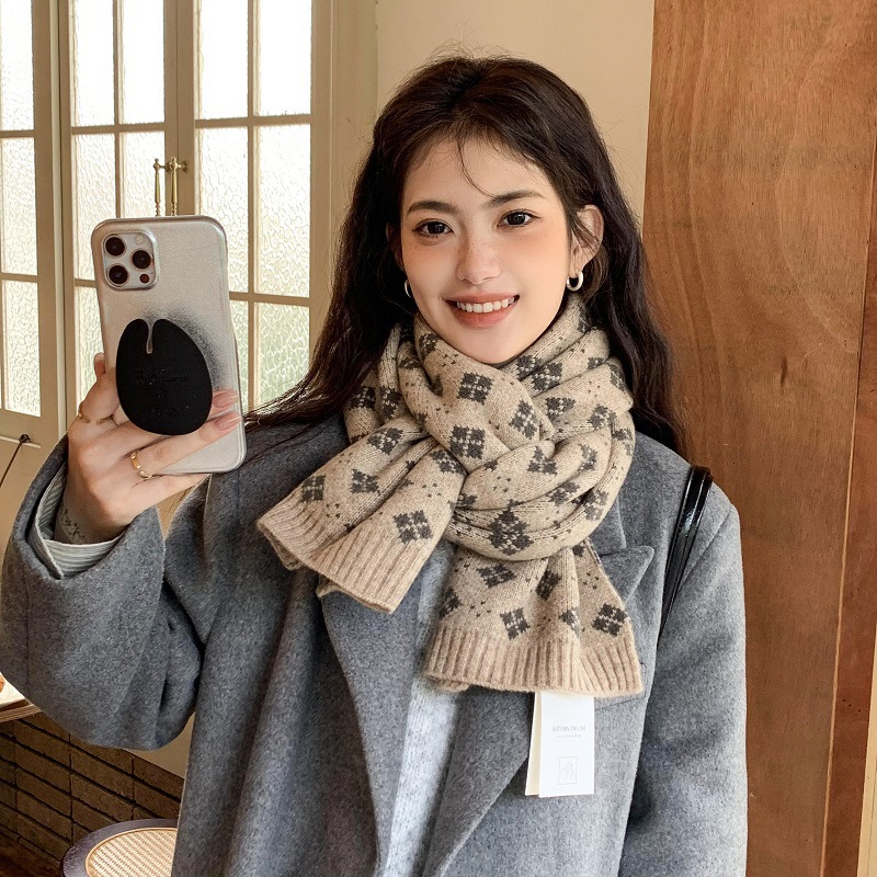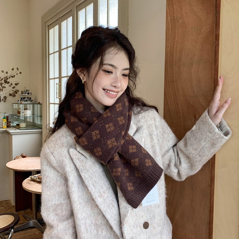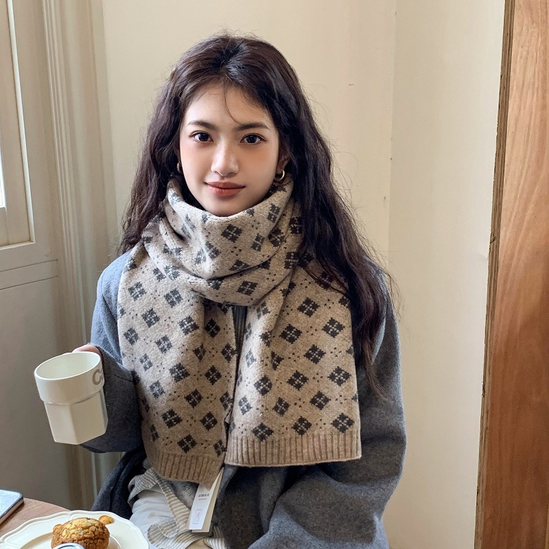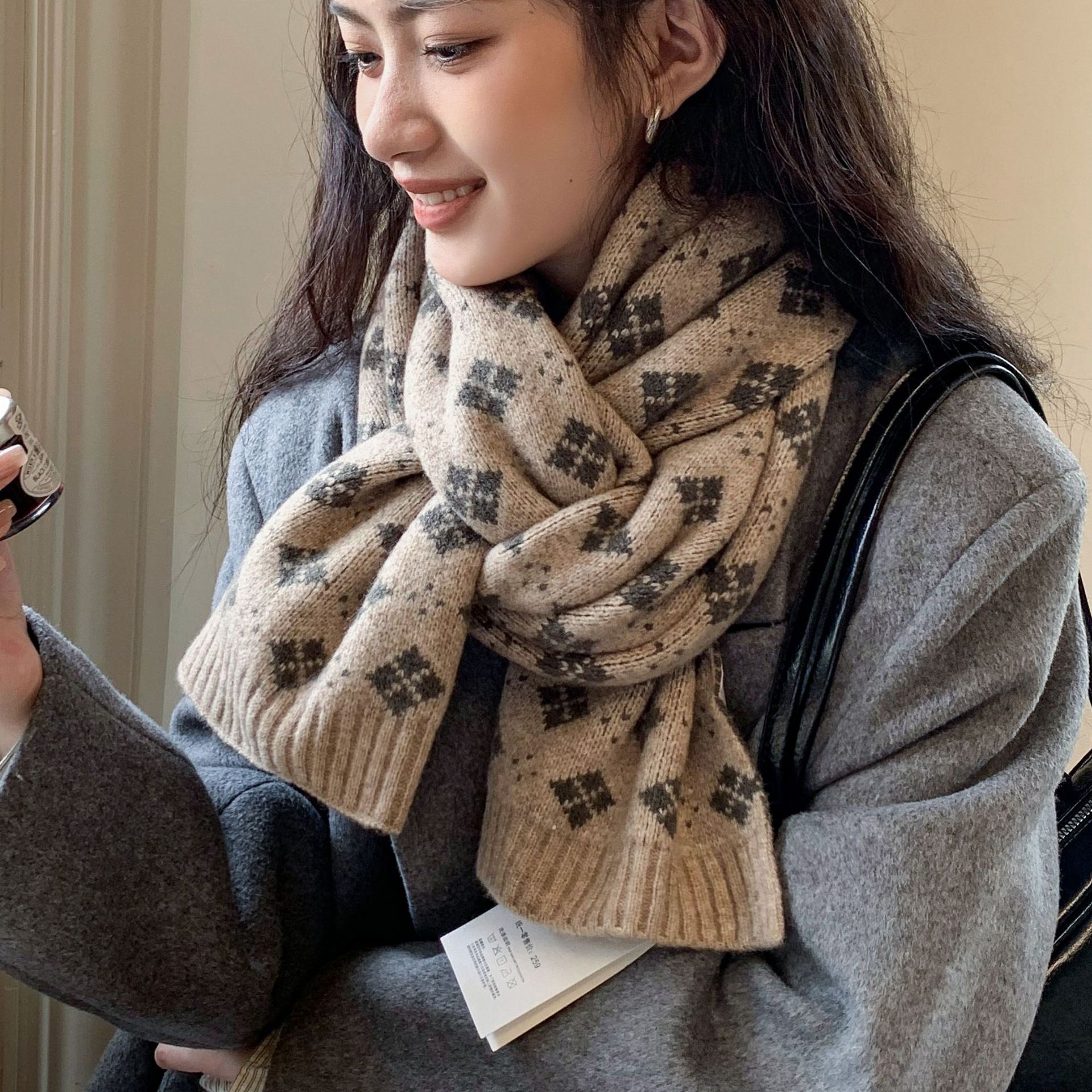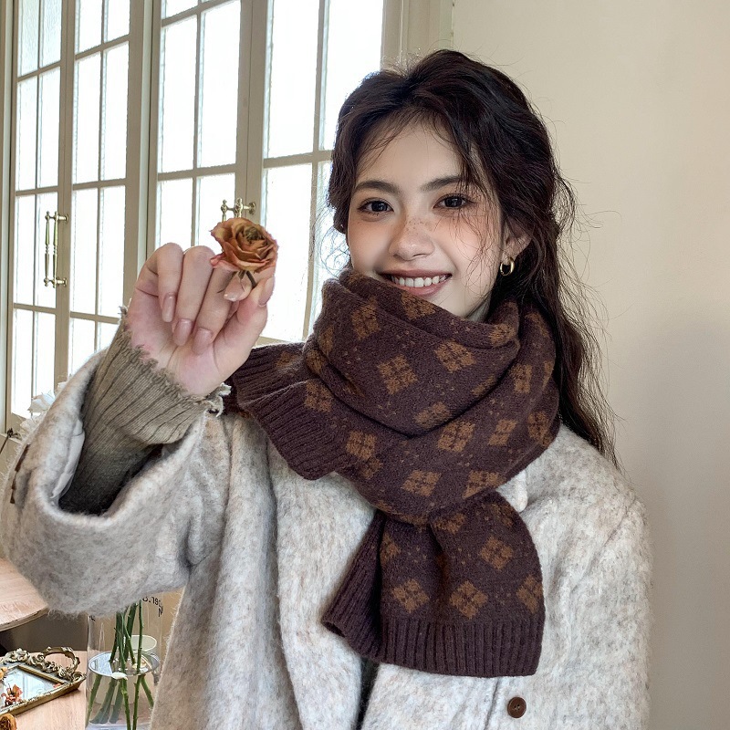 남성과 여성 커플을위한 가을과 겨울 복고풍 격자 무늬 Maillard 니트 울 스카프 크리스마스 따뜻한 스카프스토어 가기