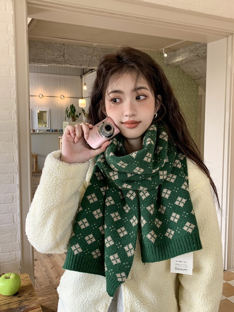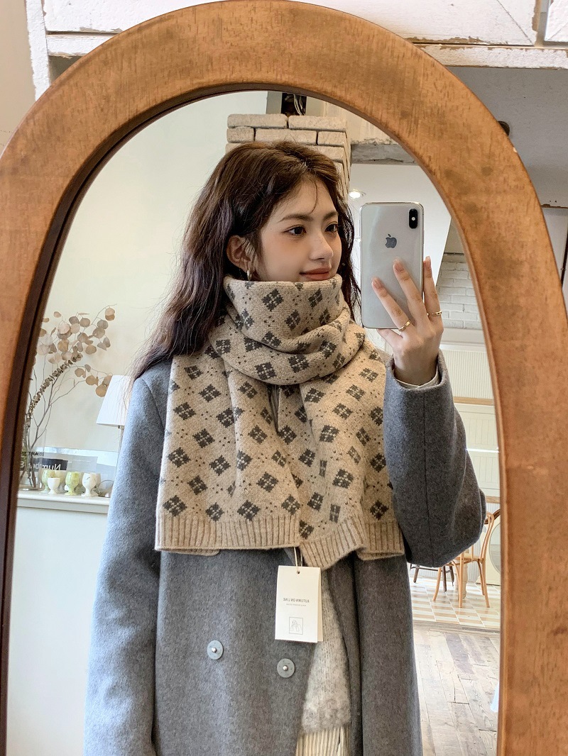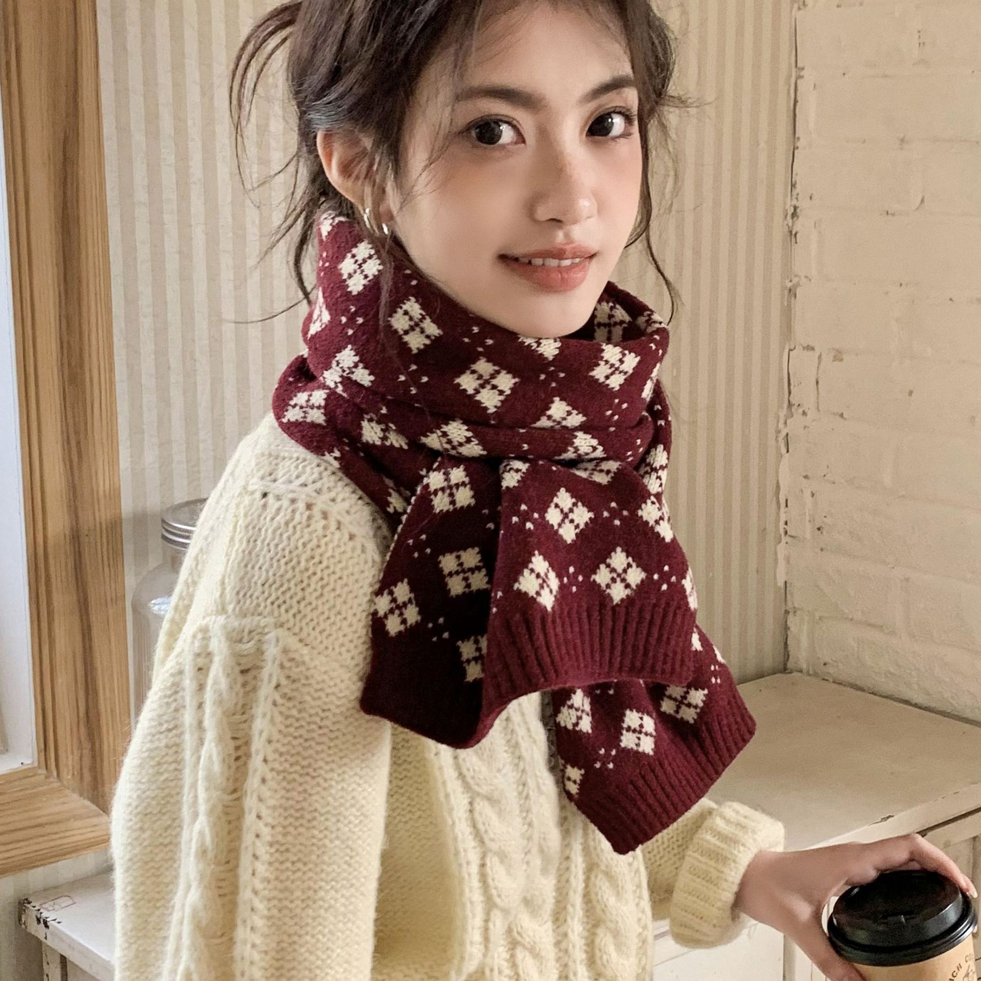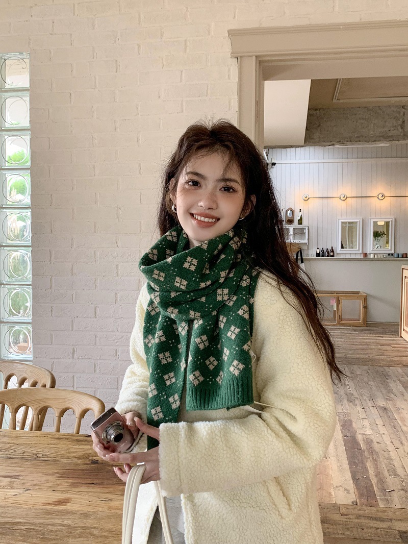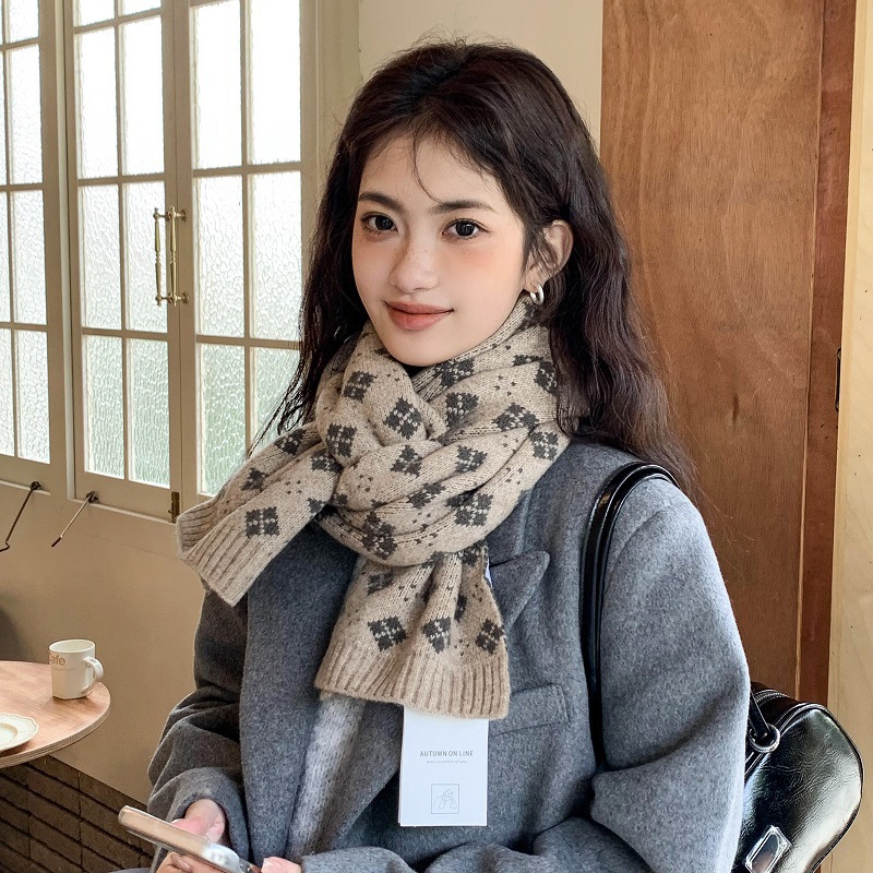 남성과 여성 커플을위한 가을과 겨울 복고풍 격자 무늬 Maillard 니트 울 스카프 크리스마스 따뜻한 스카프스토어 가기