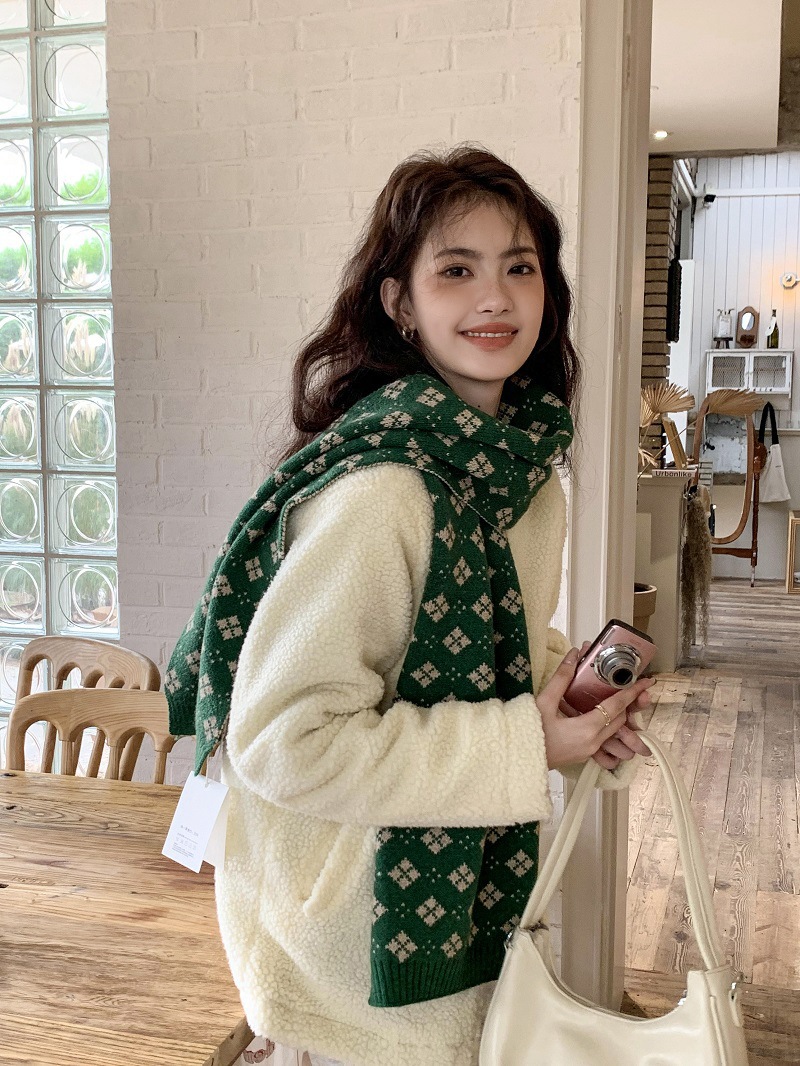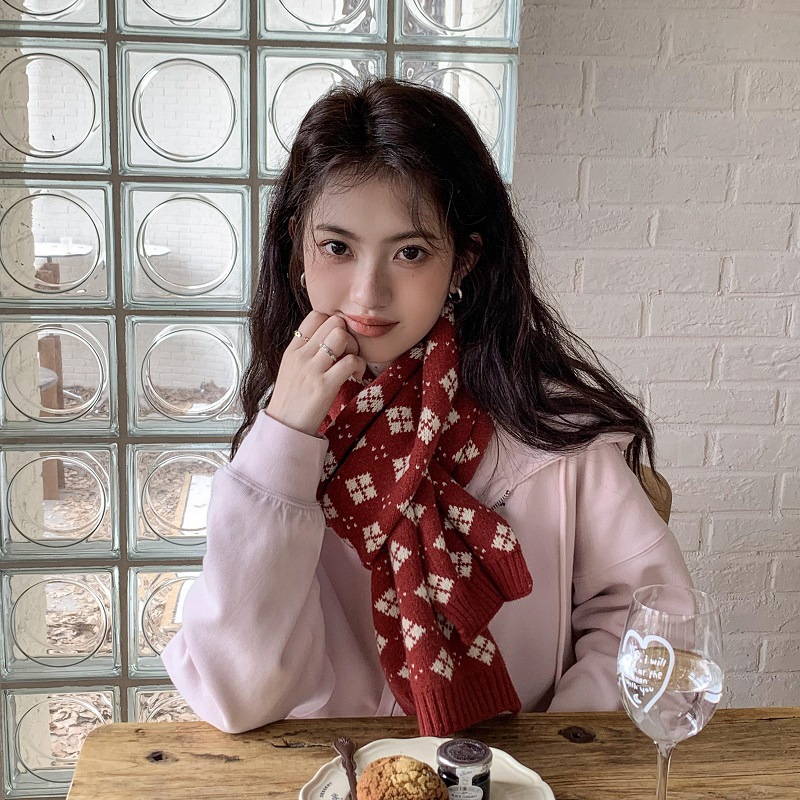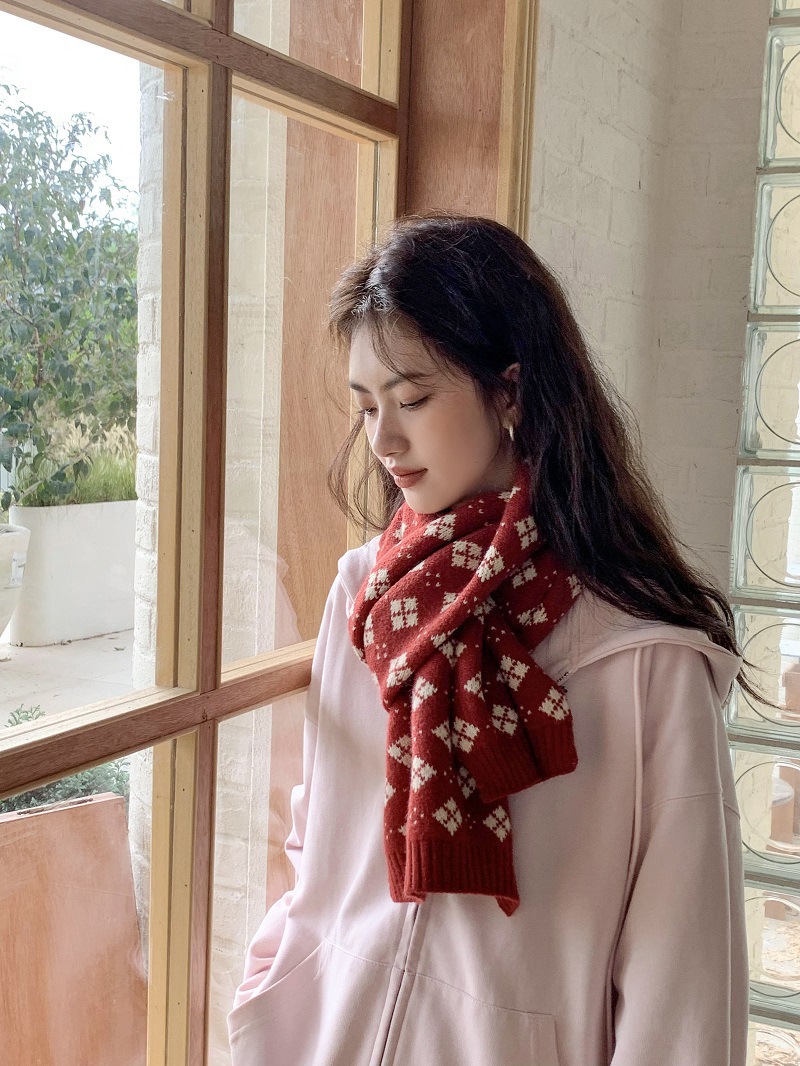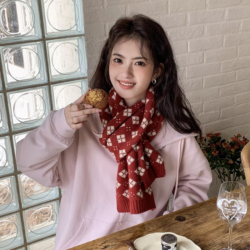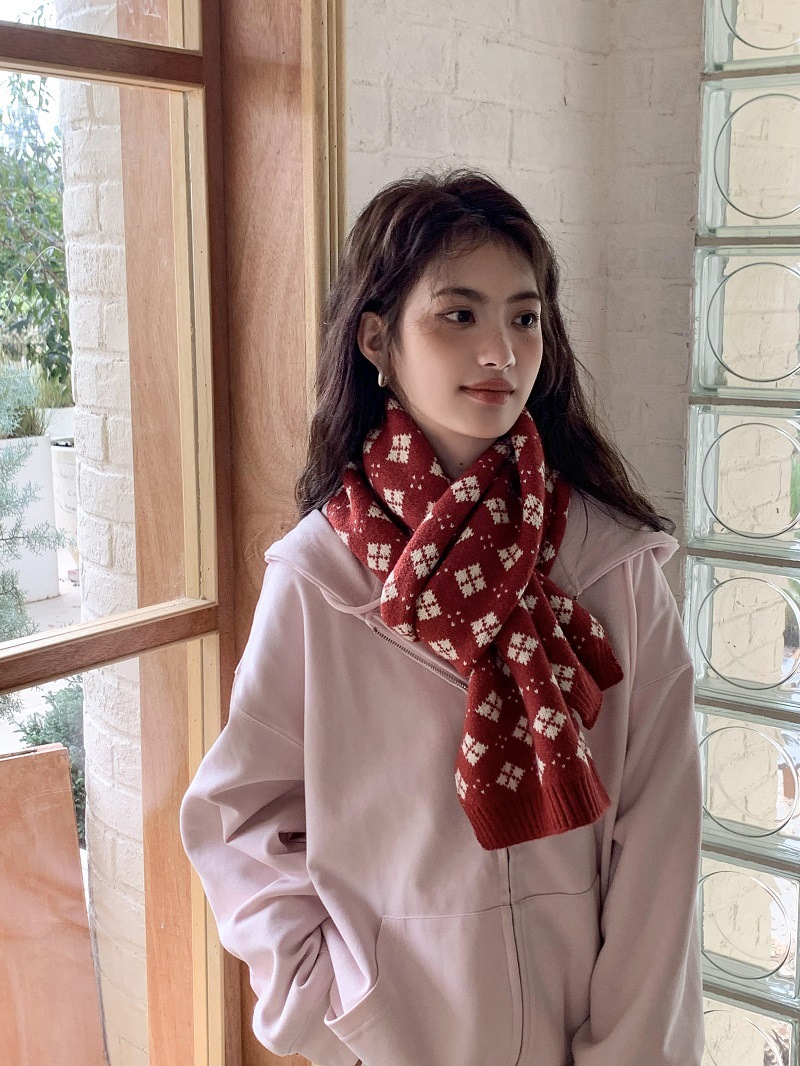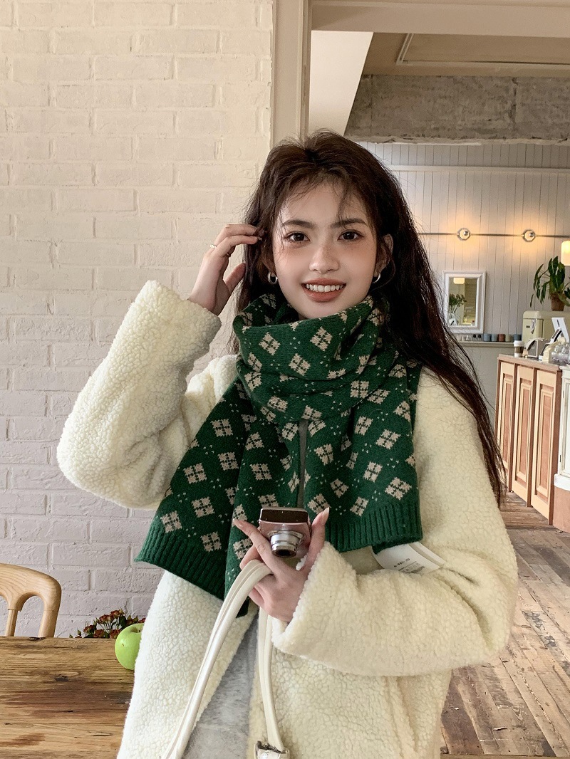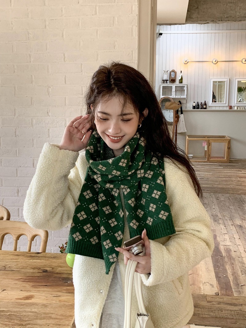 남성과 여성 커플을위한 가을과 겨울 복고풍 격자 무늬 Maillard 니트 울 스카프 크리스마스 따뜻한 스카프스토어 가기