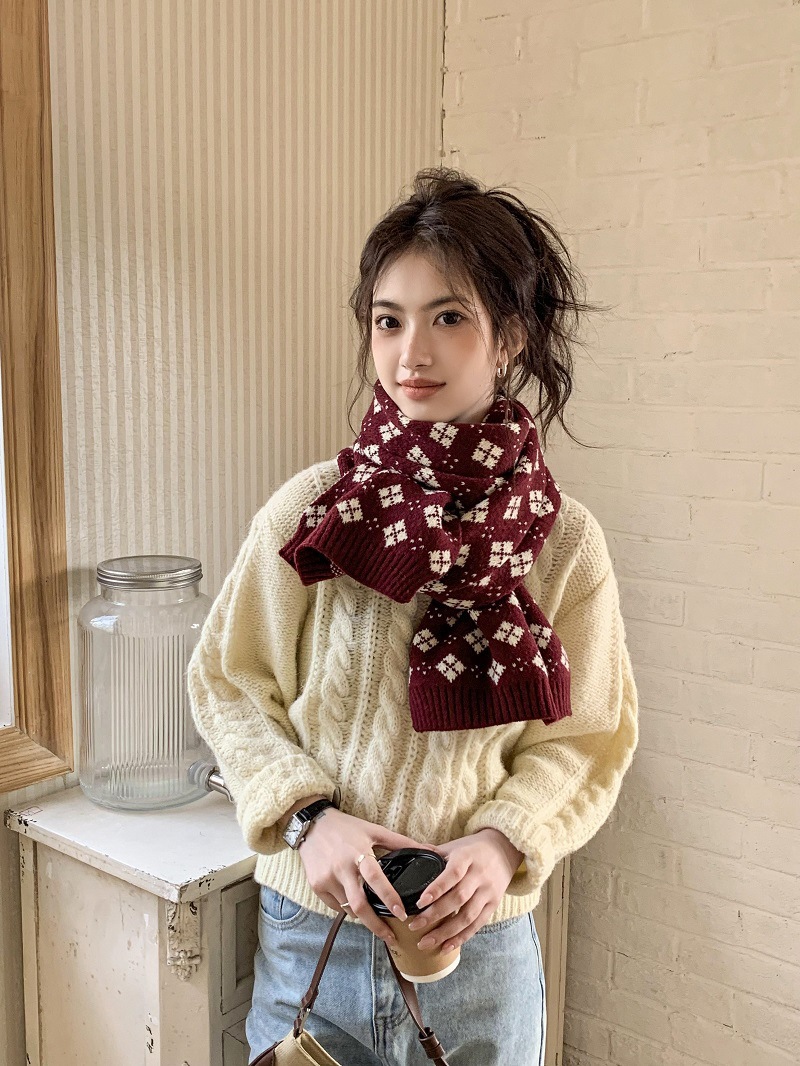 남성과 여성 커플을위한 가을과 겨울 복고풍 격자 무늬 Maillard 니트 울 스카프 크리스마스 따뜻한 스카프