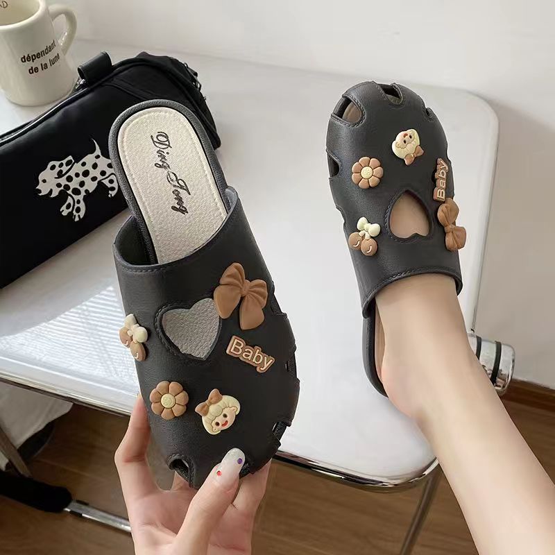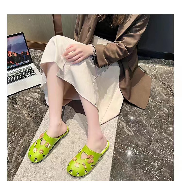 홀 슈즈 여성용 2023 신입생 기숙사 두꺼운 바닥 미끄럼 방지 간호사 수술실 착용 반 덮개 게으른 슬리퍼스토어 가기