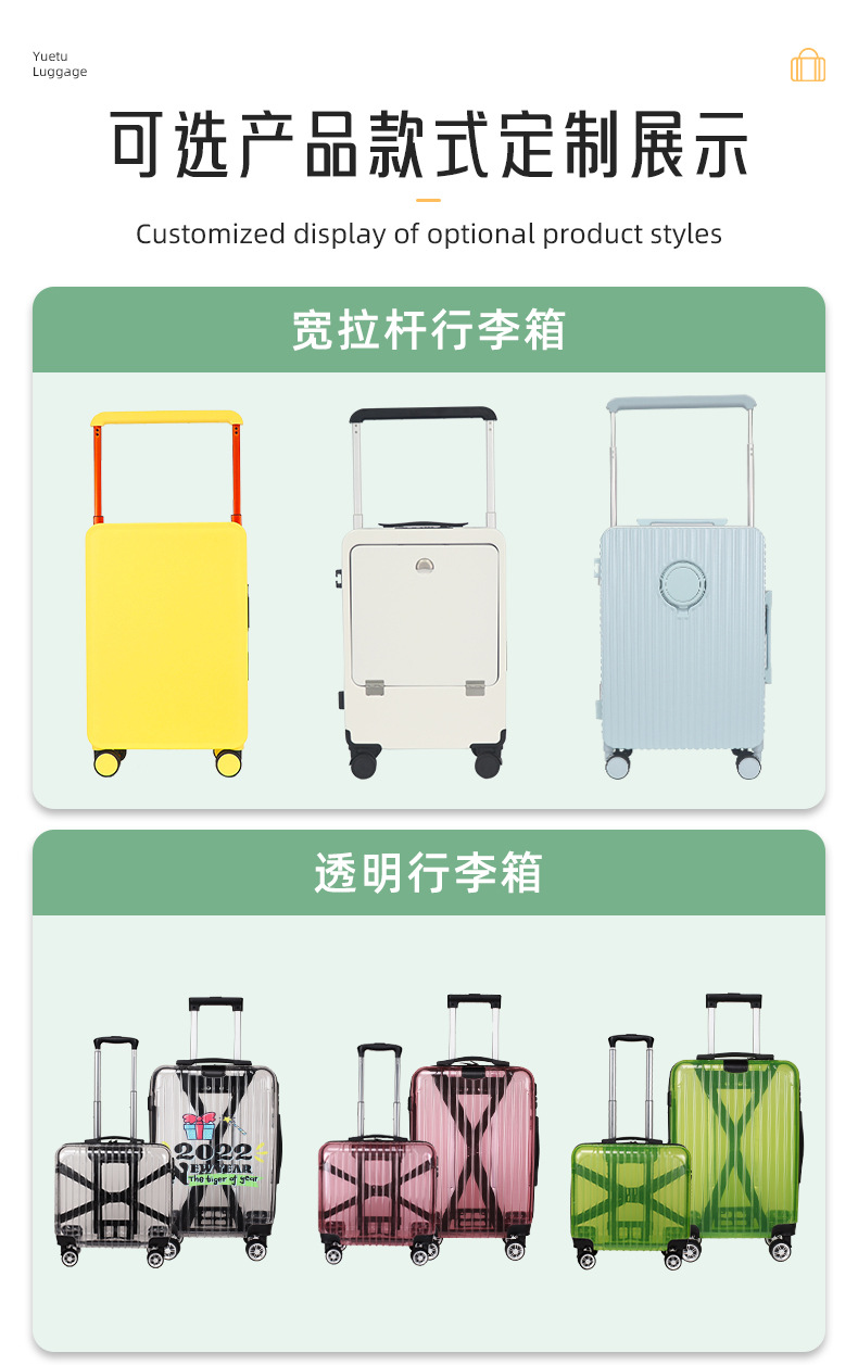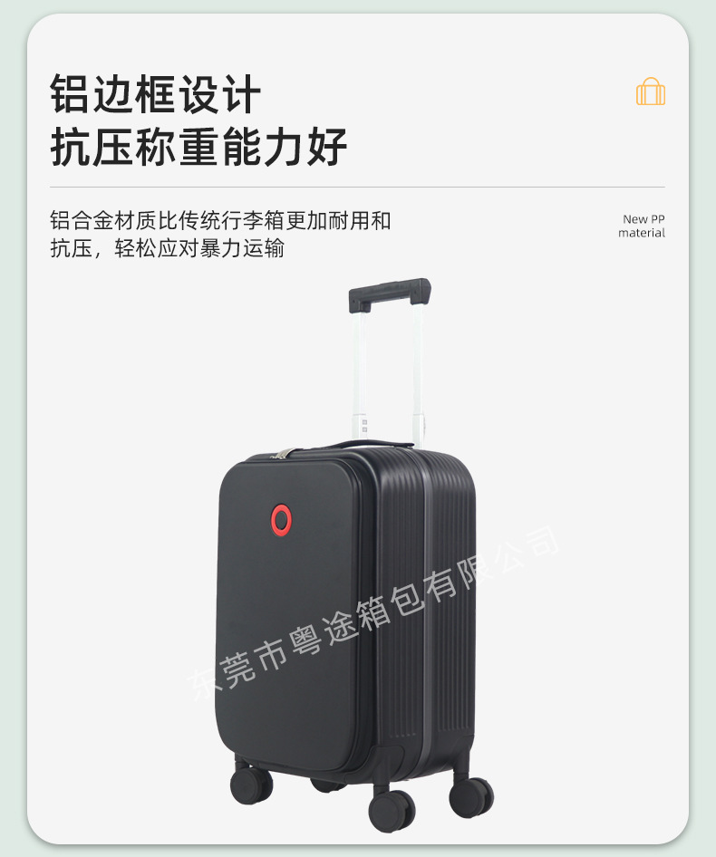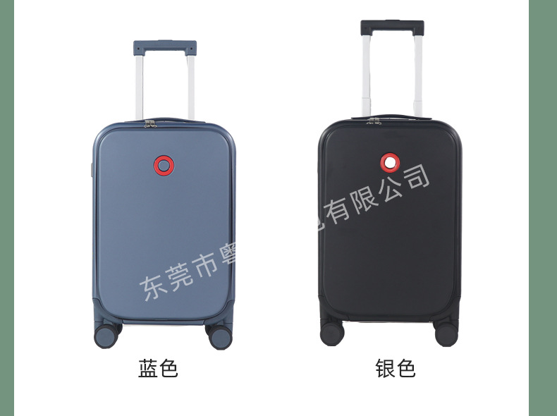 신제품 전면 오픈 뚜껑 트롤리 케이스 라운드 로고 비즈니스 여행 다기능 직원 선물 수하물 알루미늄 프레임 도매스토어 가기