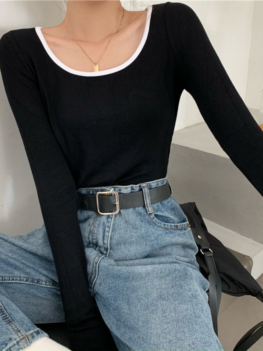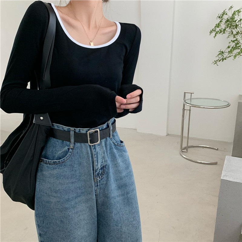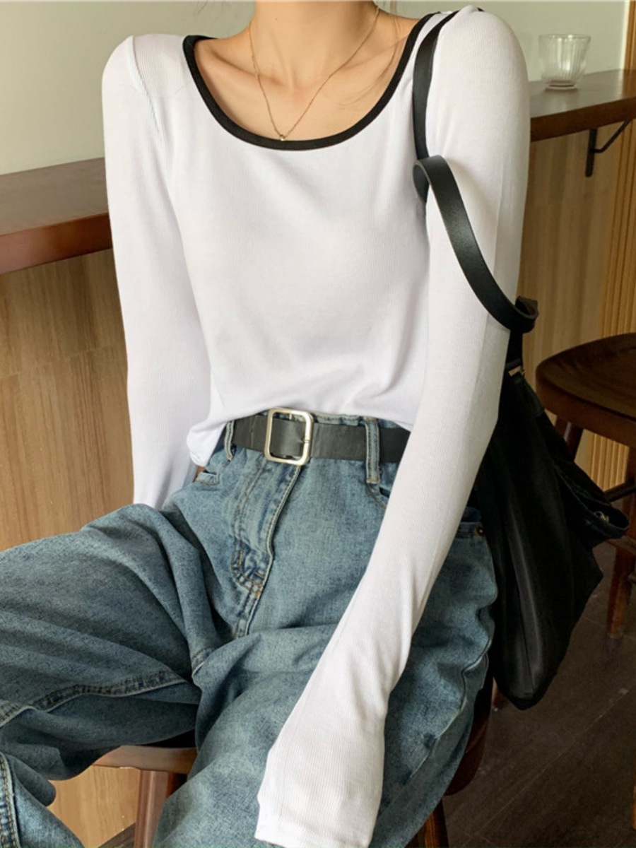 밀크 실크 초가을 슬림핏 긴팔 티셔츠 여성용 쇄골 이너베이스 셔츠 짧은 달콤하고 뜨거운 학생 탑