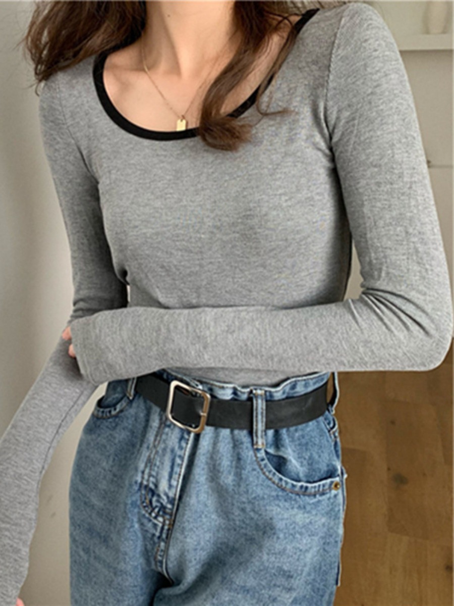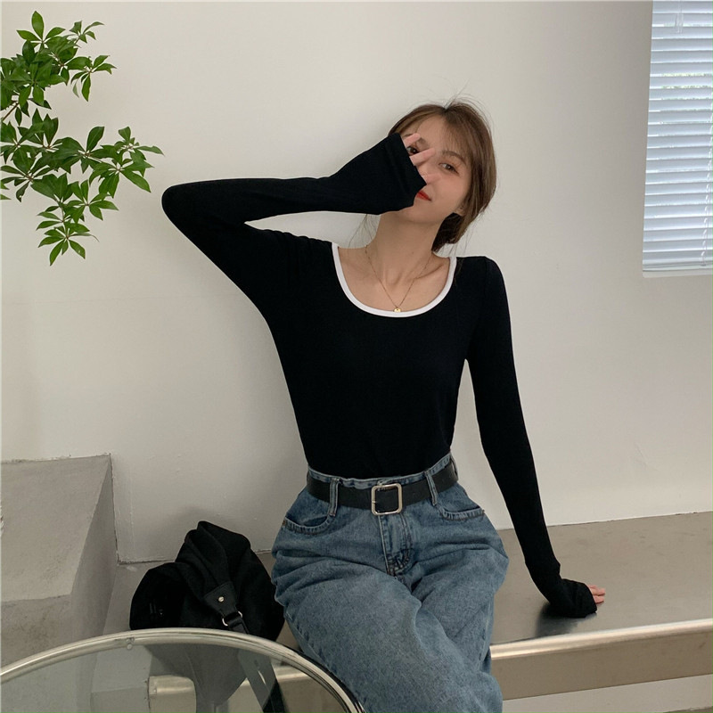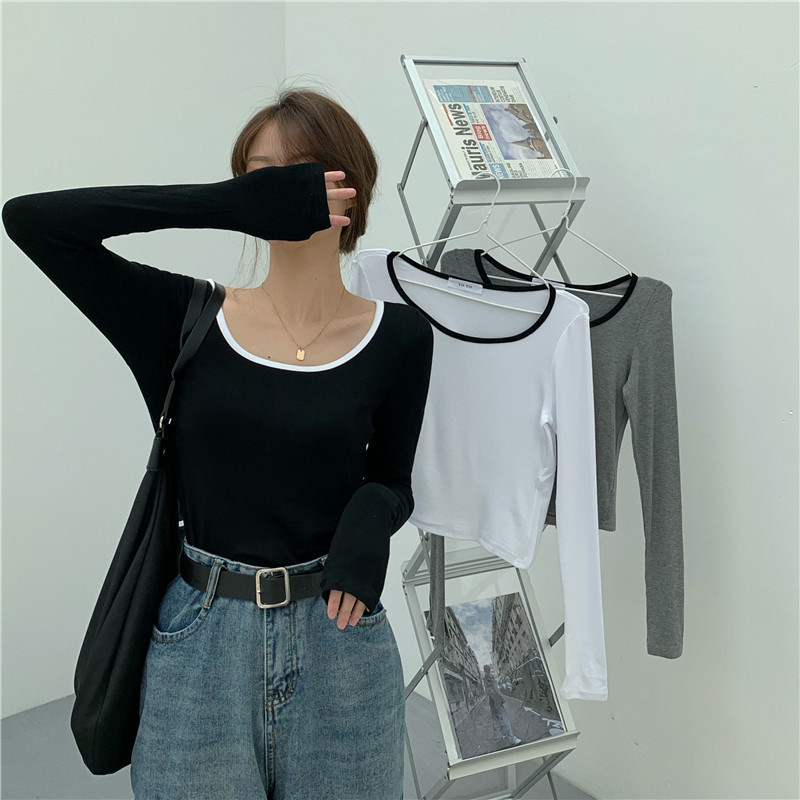 밀크 실크 초가을 슬림핏 긴팔 티셔츠 여성용 쇄골 이너베이스 셔츠 짧은 달콤하고 뜨거운 학생 탑스토어 가기