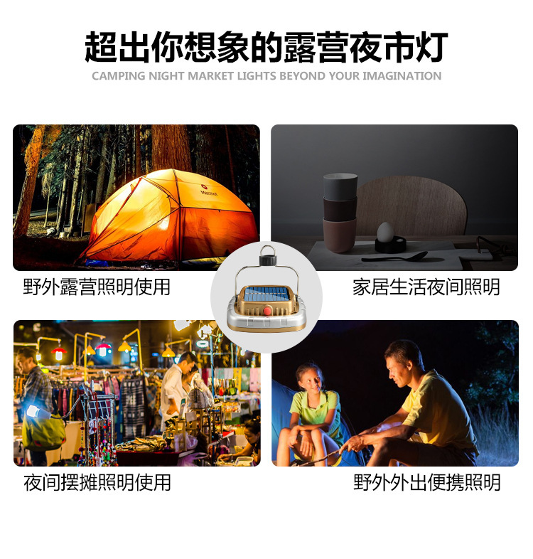 국경 간 태양 광 LED 캠핑 조명 텐트 조명 USB 충전식 캠핑 비상 조명 외부 가정 조명 야간 시장 마구간 조명