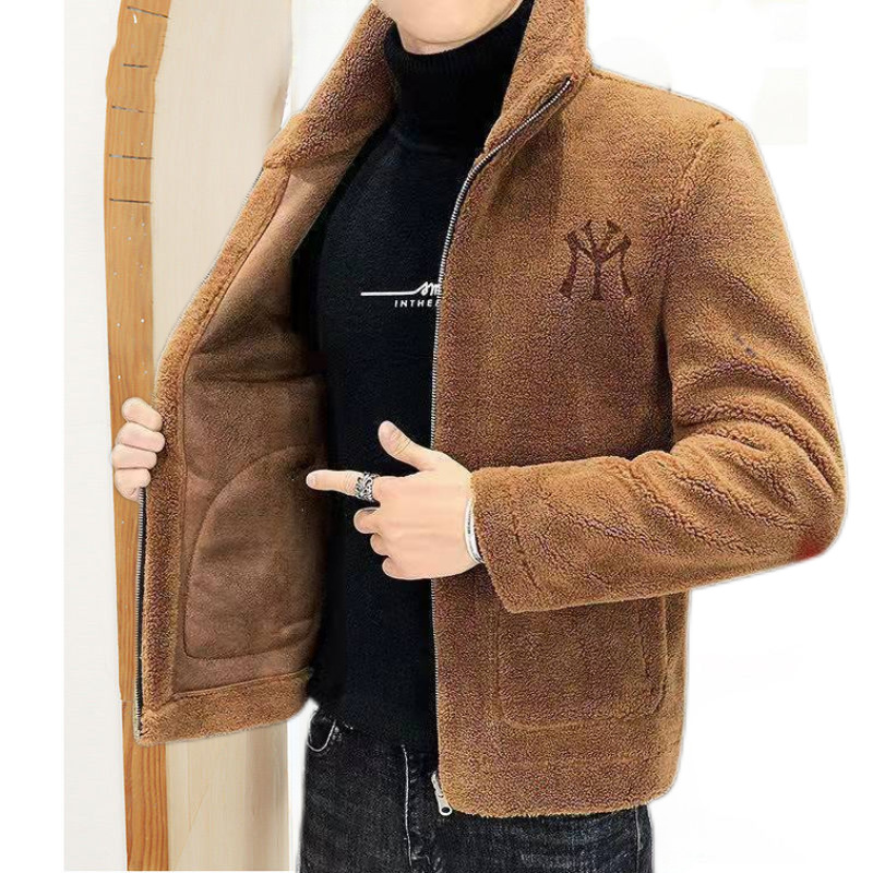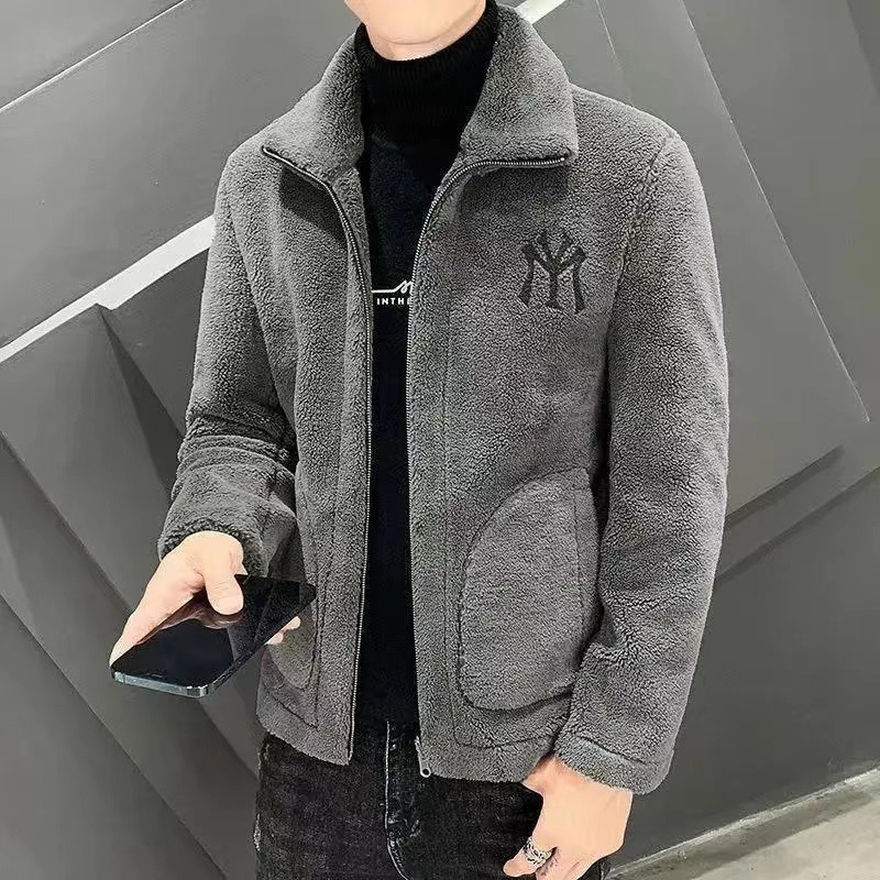 모조 양고기 양털 가을과 겨울 새 재킷 옷깃 짧은 가죽 남성용 양고기 양털 두꺼운 재킷 플러스 팻 플러스 조수스토어 가기