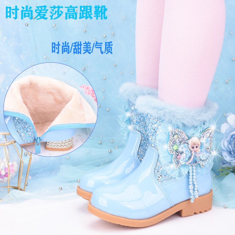 소녀 부츠 마이크로 화이버 가죽 공주 짧은 부츠 2023 새로운 가을과 겨울 기모 송아지 부츠 어린이 마틴 부츠 힐 부츠스토어 가기
