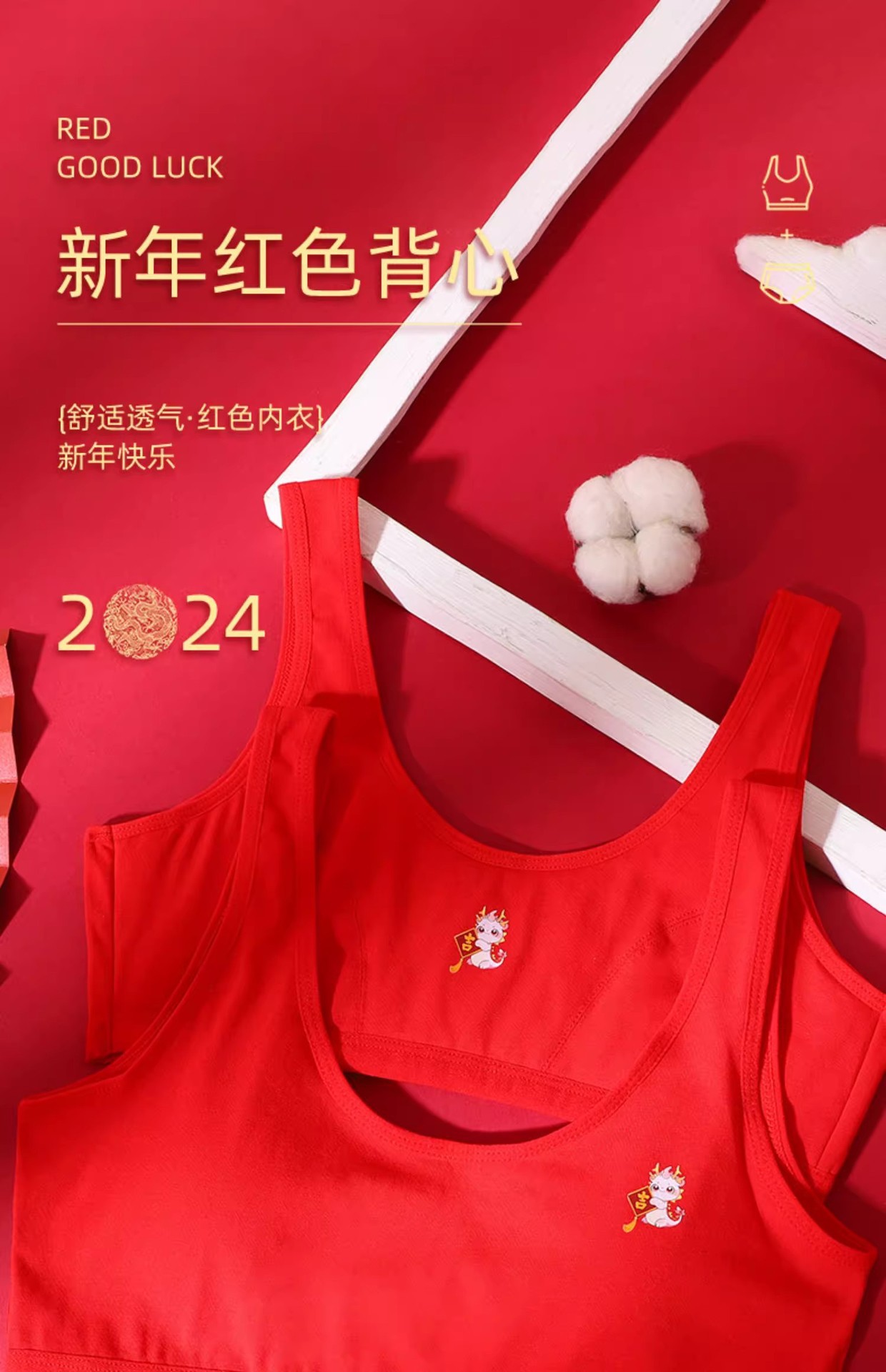 용의 해에 빨간 속옷 용의 해에 세트 강철 림 브래지어없이 젊은 여자의 스포츠 면 조끼스토어 가기