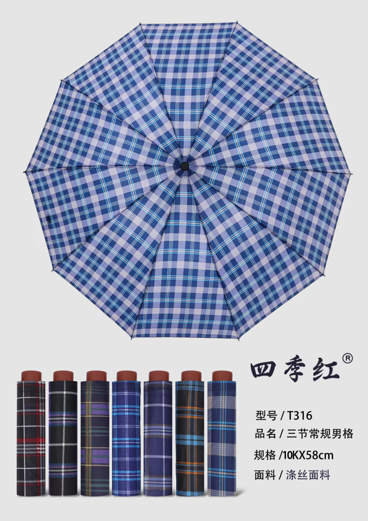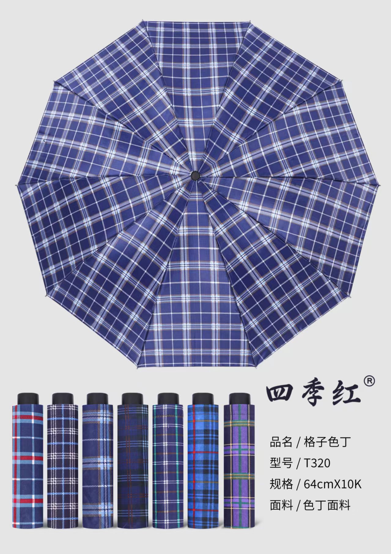 • 10 뼈 65 격자 무늬 3 섹션 폴리 에스테르 우산 (우산 아래 108cm) 혼합 색상