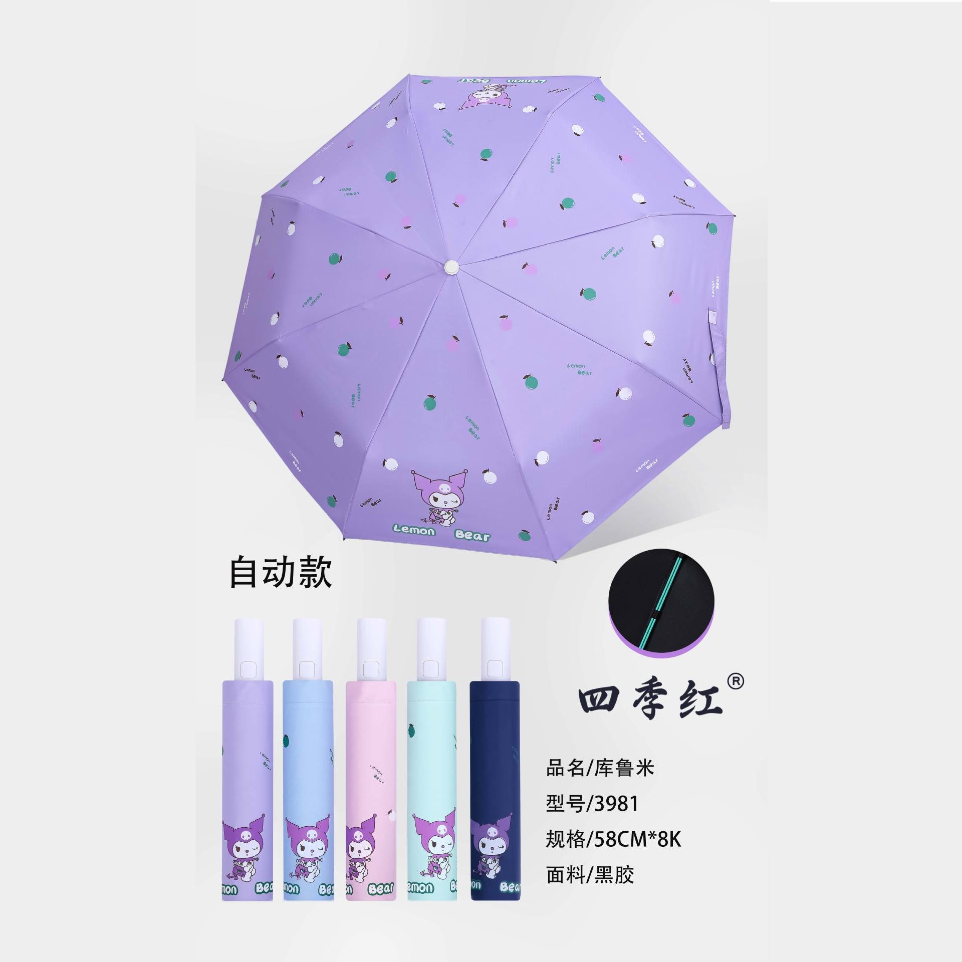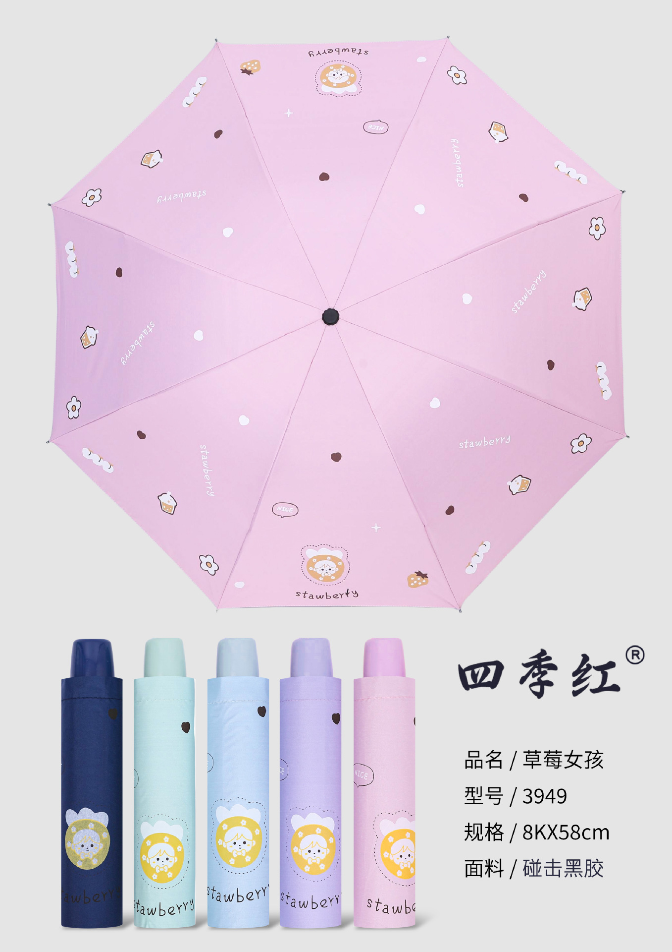 • 8 뼈 수동 딸기 소녀 검은 접착제 우산 (우산 아래 98cm) 혼합 색상