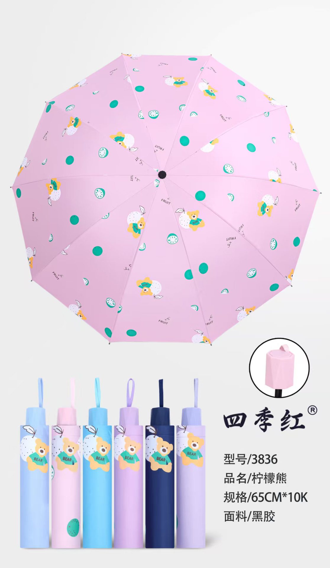 • 10 뼈 65 레몬 베어 블랙 접착제 우산 (우산 아래 108cm) 혼합 색상
