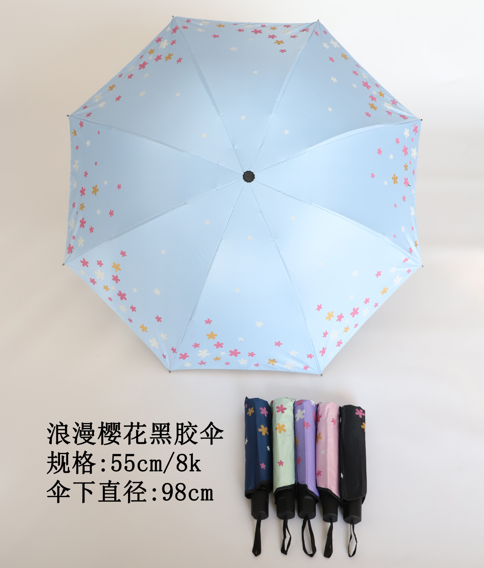 • 8 뼈 수동 로맨틱 벚꽃 블랙 접착제 우산 (우산 아래 98cm) 혼합 색상