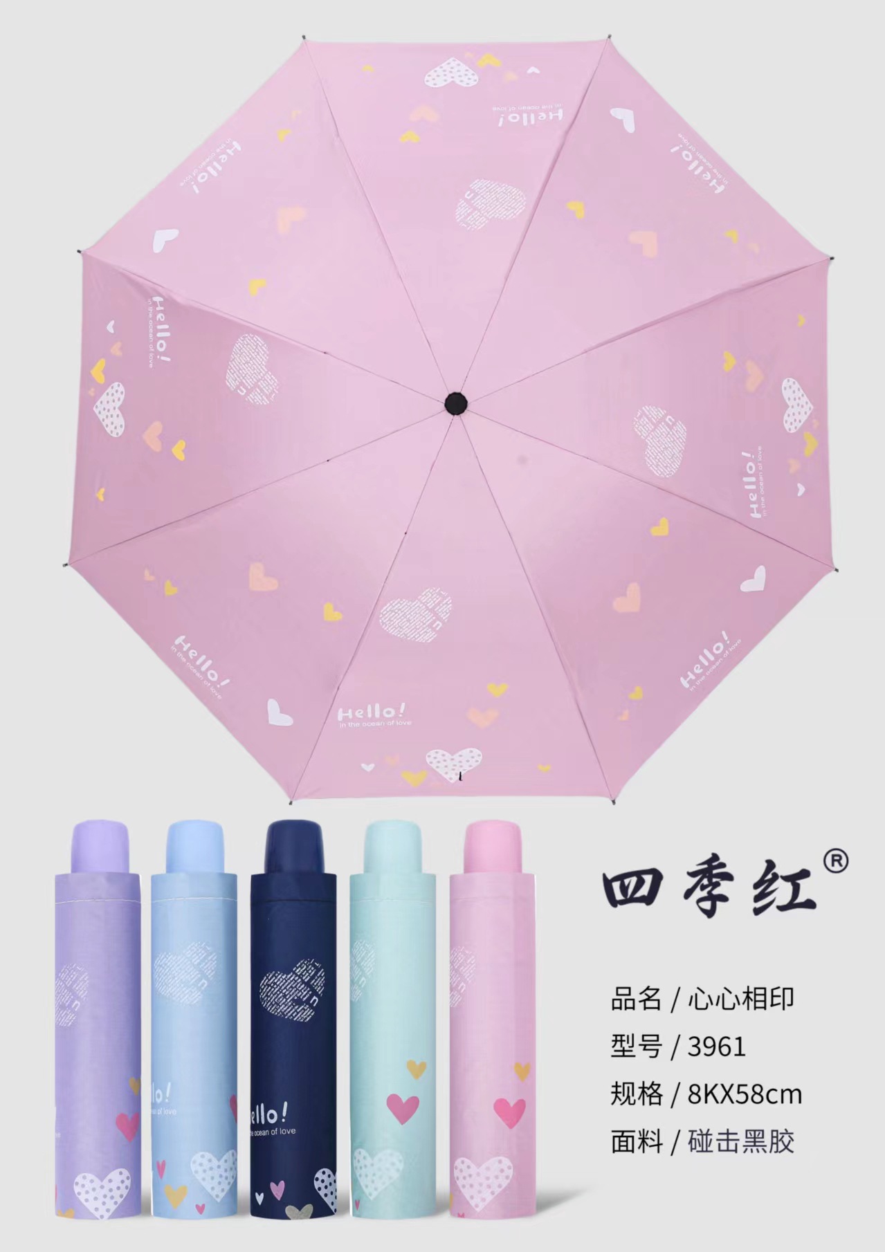 • 8 뼈 수동 심장 검은 고무 우산 (우산 아래 98cm) 혼합 색상
