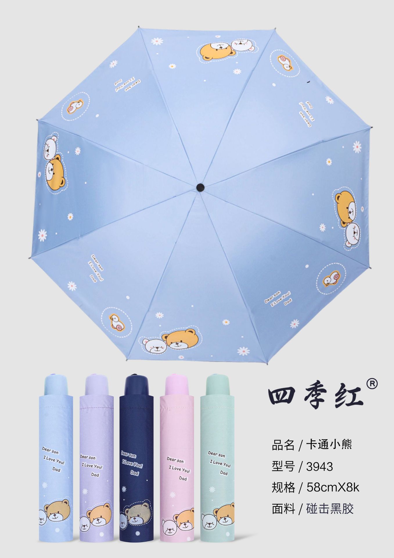 • 8 뼈 수동 만화 곰 검은 접착제 우산 (우산 아래 98cm) 혼합 색상