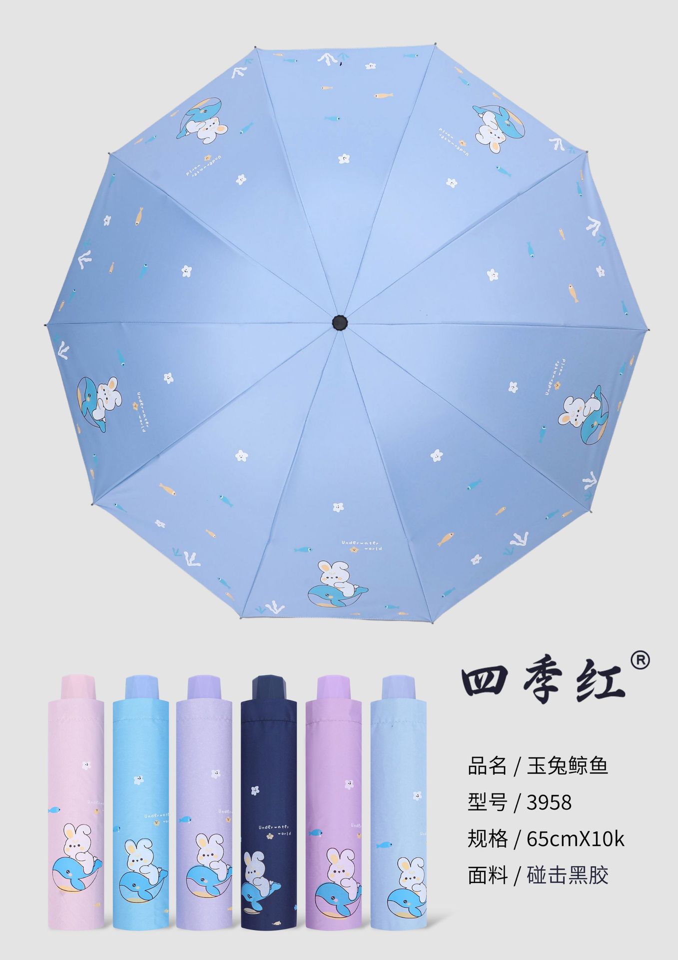• 10 뼈 65 옥 토끼 고래 검은 접착제 우산 (우산 아래 108cm) 혼합 색상