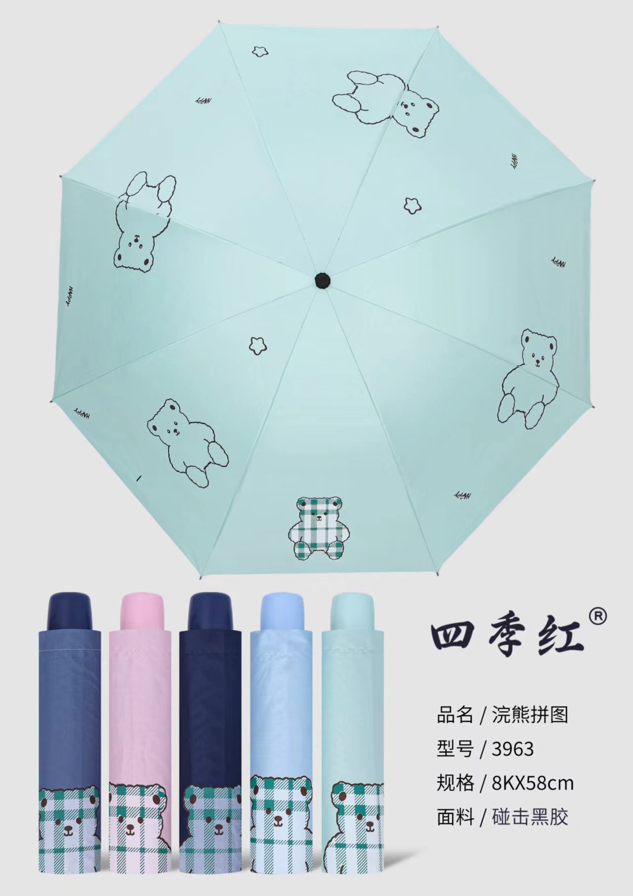 • 8 뼈 수동 비스킷 곰 검은 접착제 우산 (우산 아래 98cm) 혼합 색상