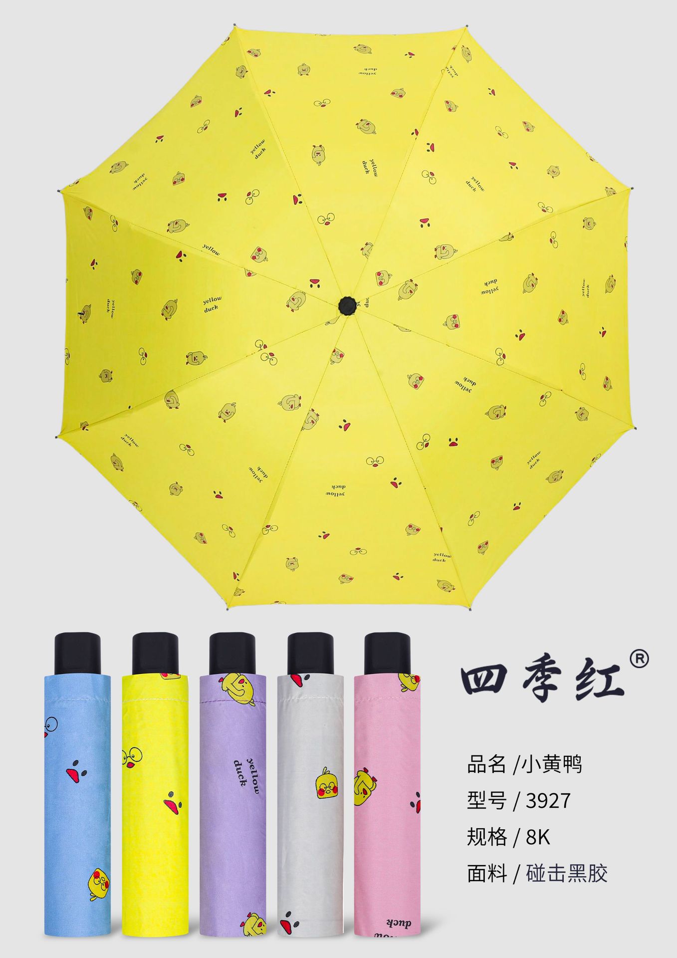 • 8 뼈 수동 노란색 오리 검은 고무 우산 (우산 아래 98cm) 혼합 색상
