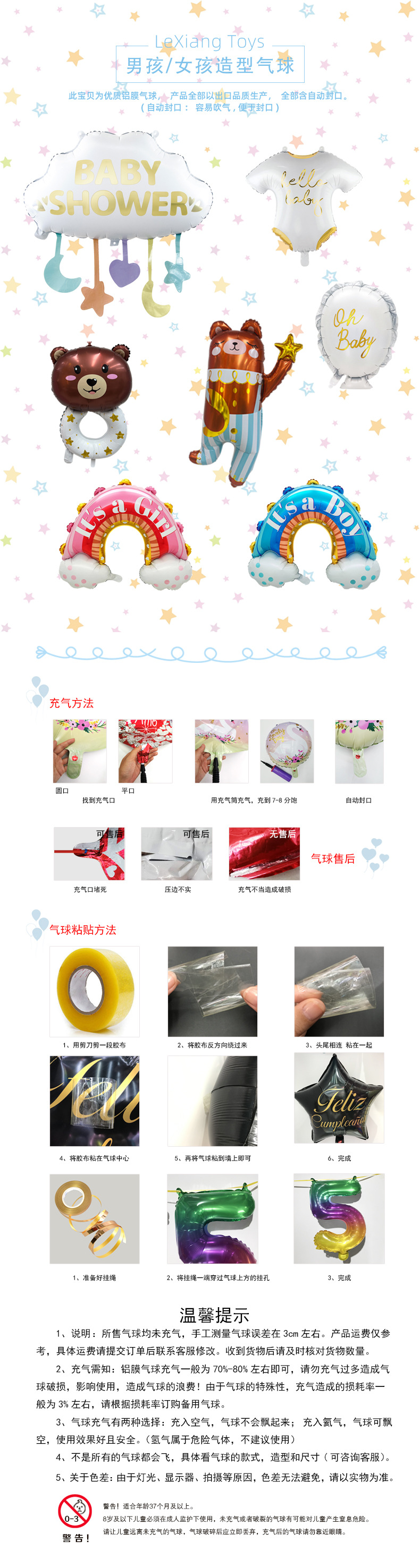 MECRLA 크로스보더 남아 여아 파티 알루미늄 필름 풍선 OH BABY 아기옷 귀여운 곰 모양 장식스토어 가기
