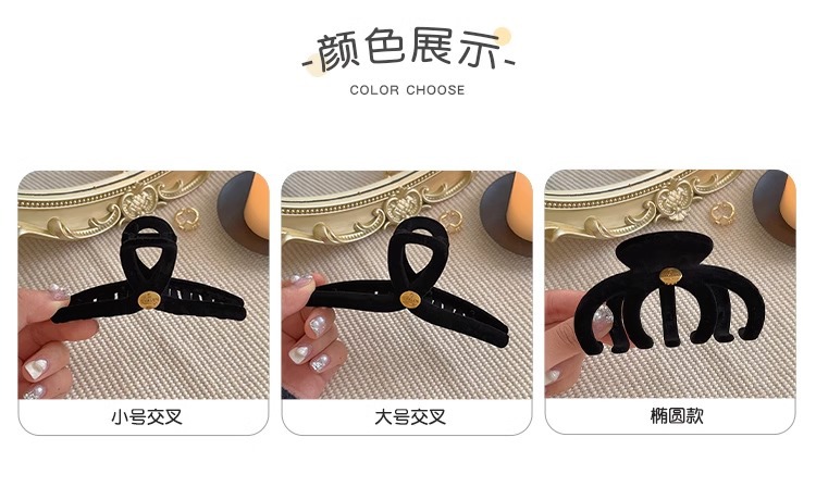 골드 라벨 몰려 클립 가을과 겨울 고급 강박성 벨벳 머리핀 간단한 큰 머리 볼륨 상어 클립 디스크 머리핀
