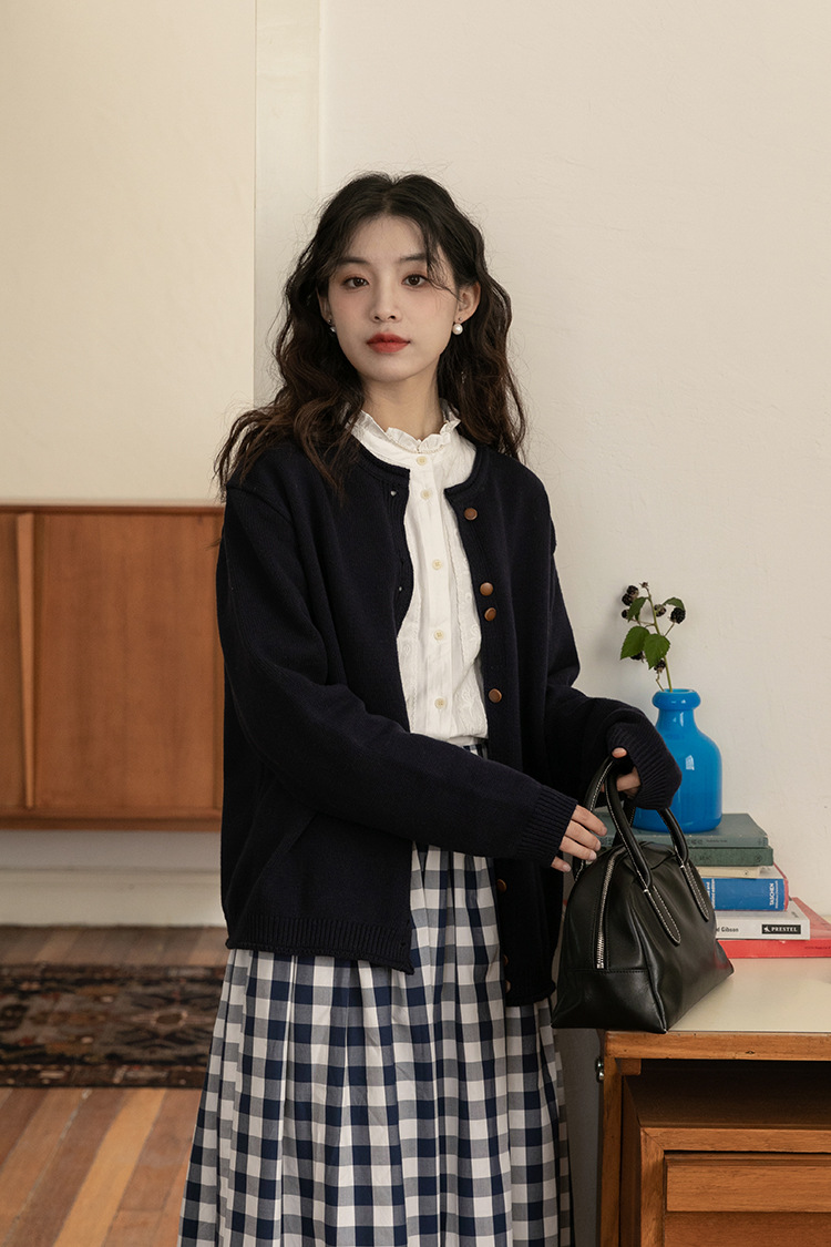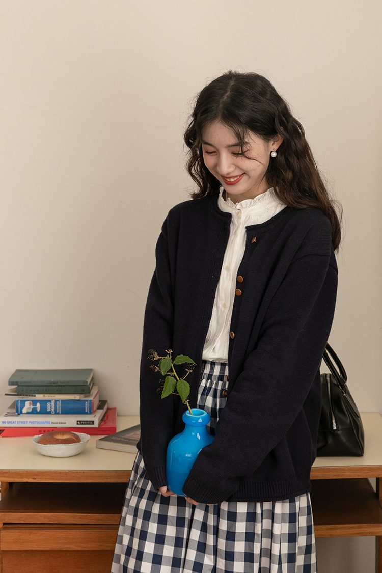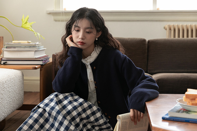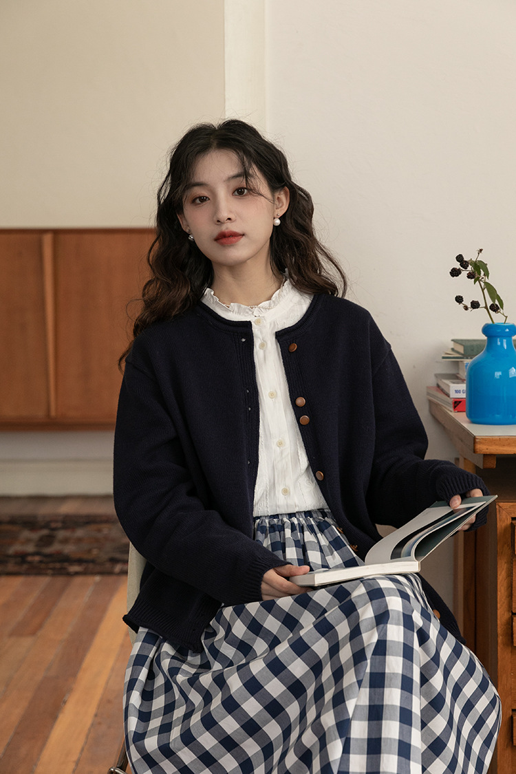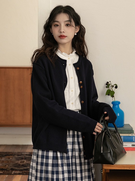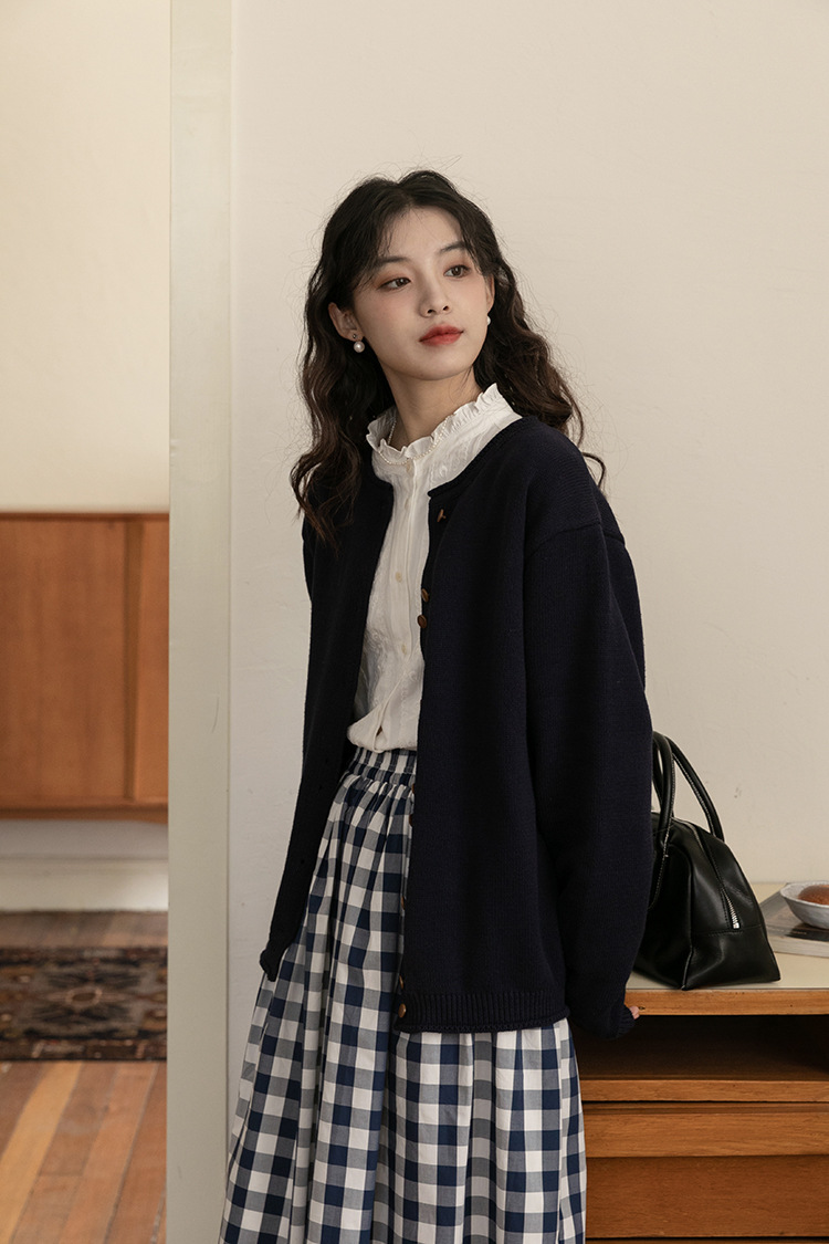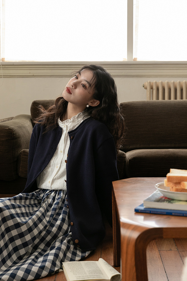 실제 촬영 2025 가을 겨울 일본풍 예술적인 라운드넥 화이트 니트 스웨터 재킷+긴팔 셔츠+반바지