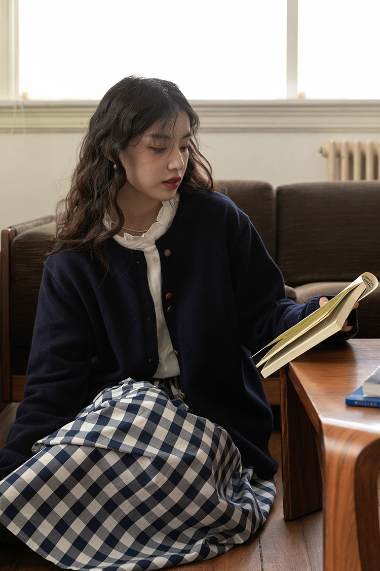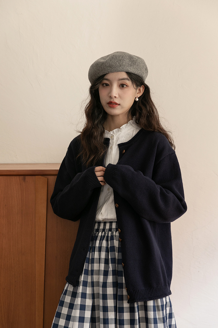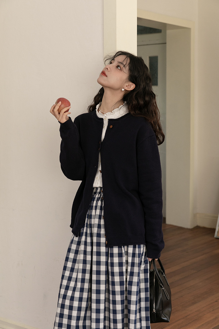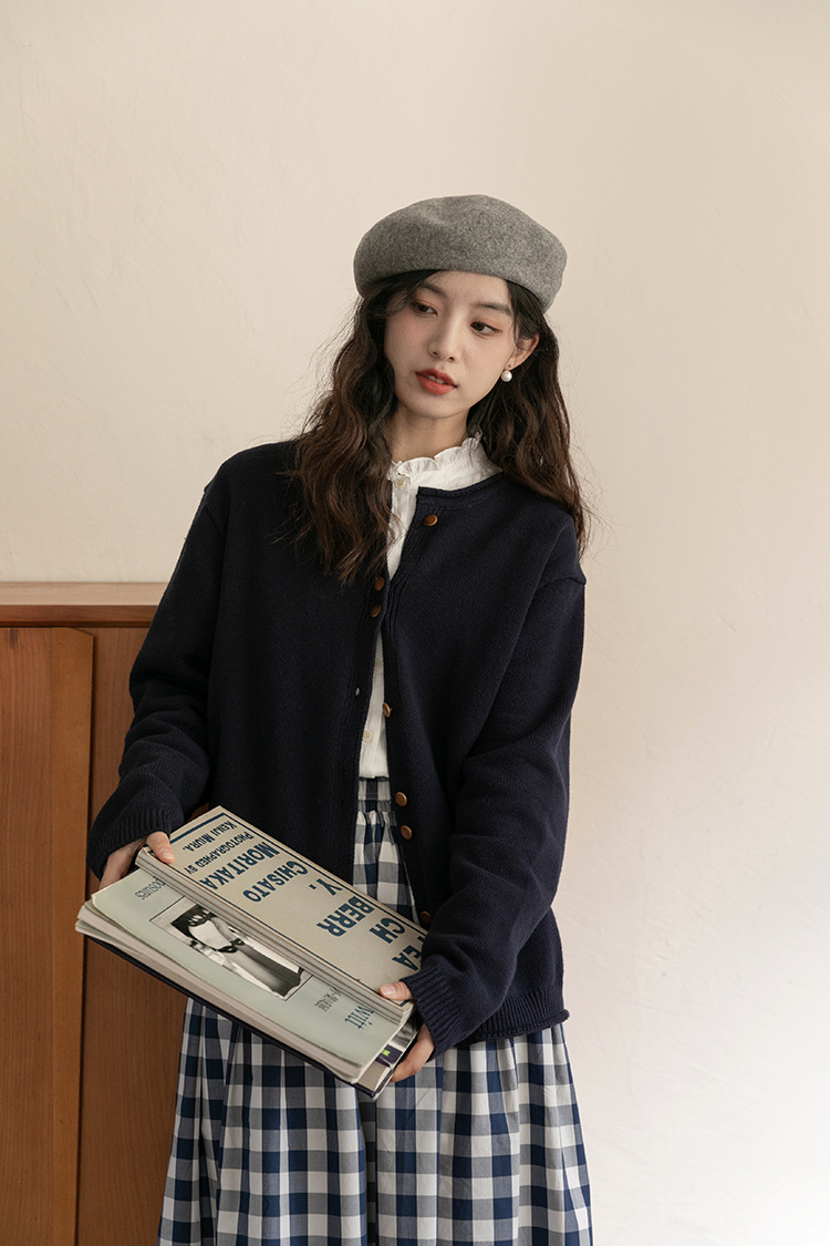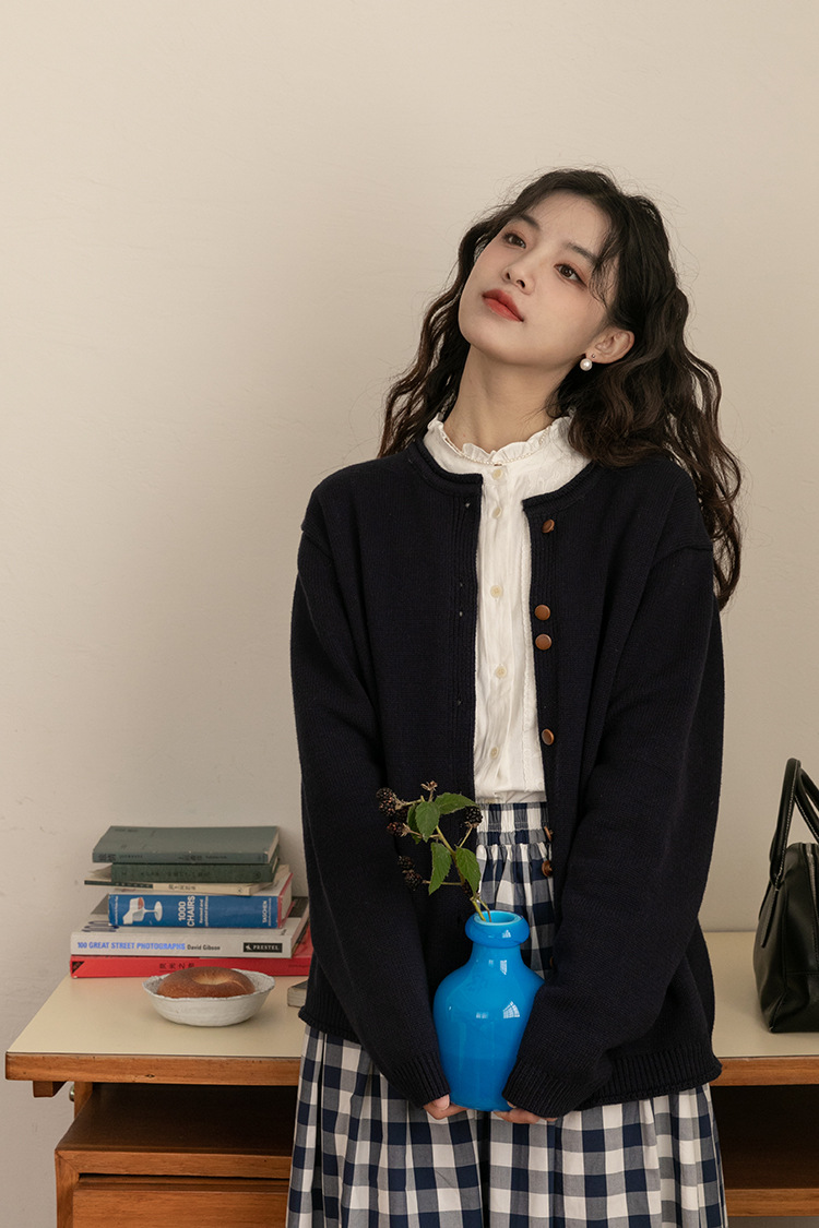 실제 촬영 2025 가을 겨울 일본풍 예술적인 라운드넥 화이트 니트 스웨터 재킷+긴팔 셔츠+반바지