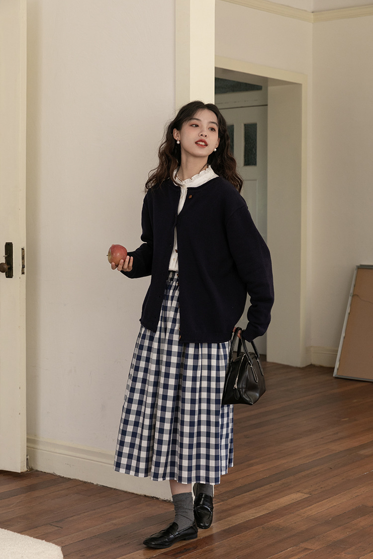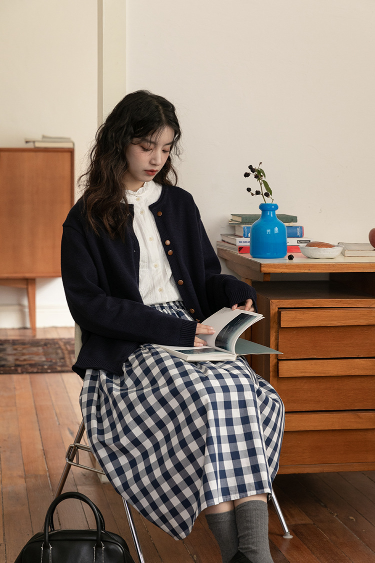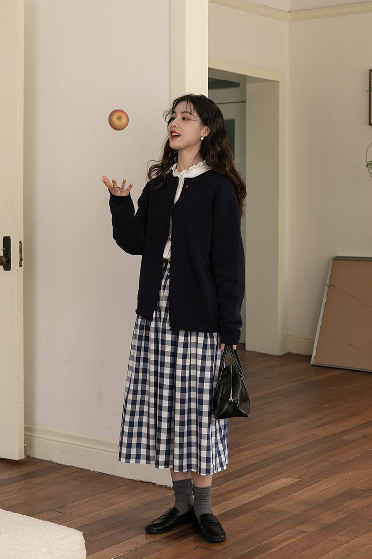 • 격자 무늬 스커트 (원피스 오버 스커트)