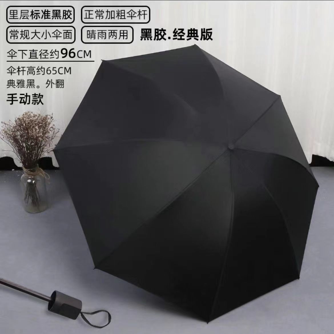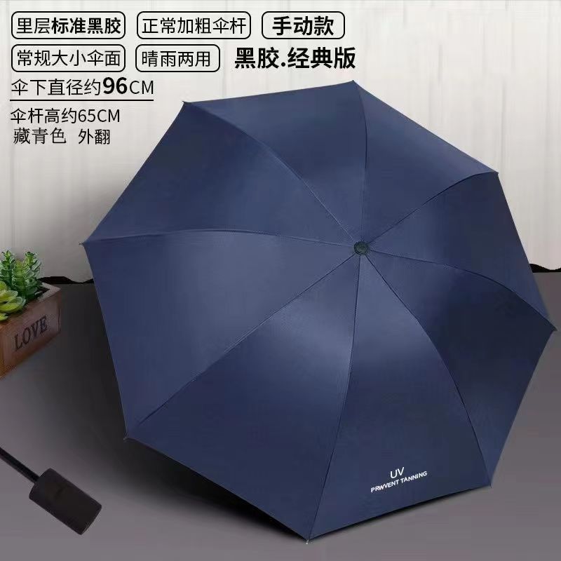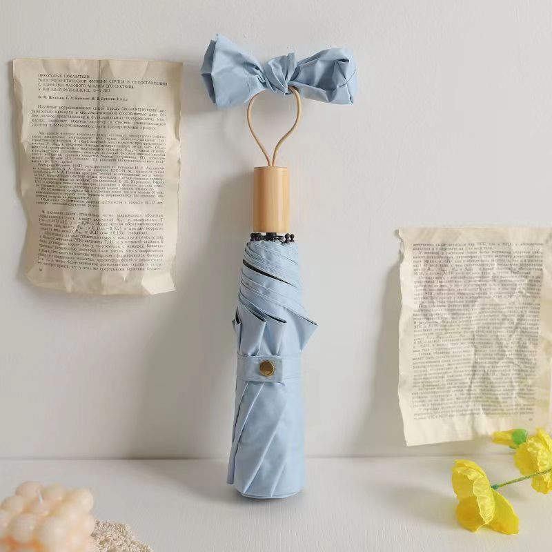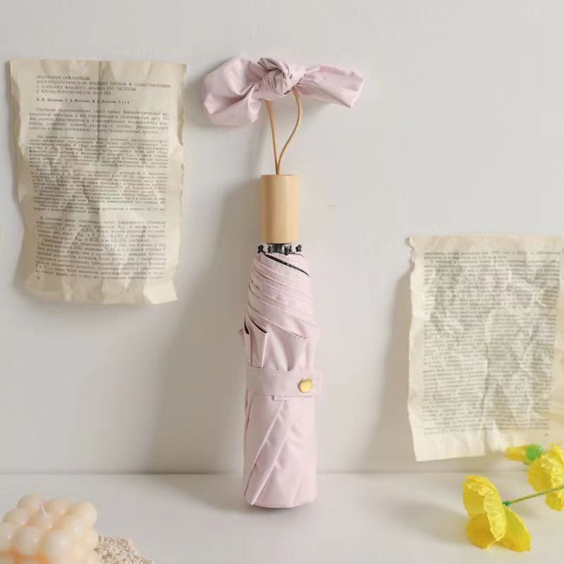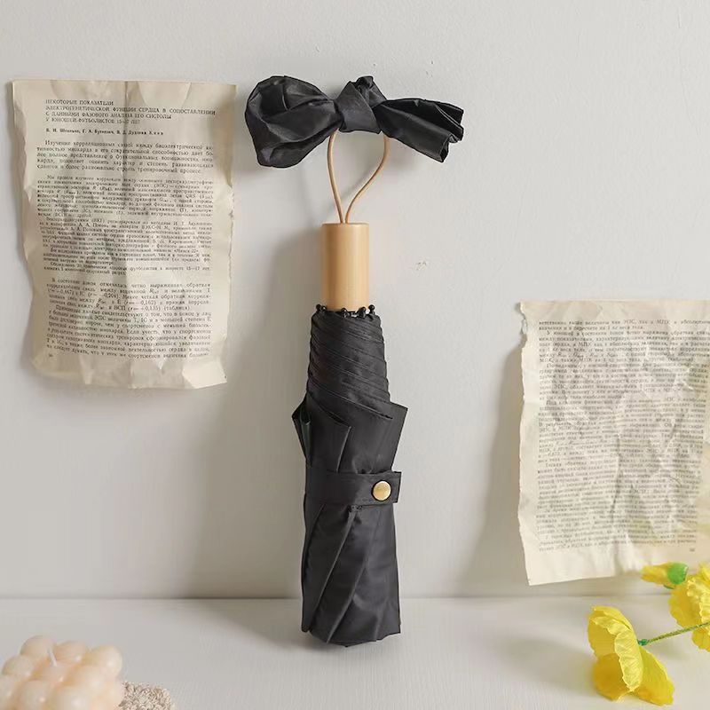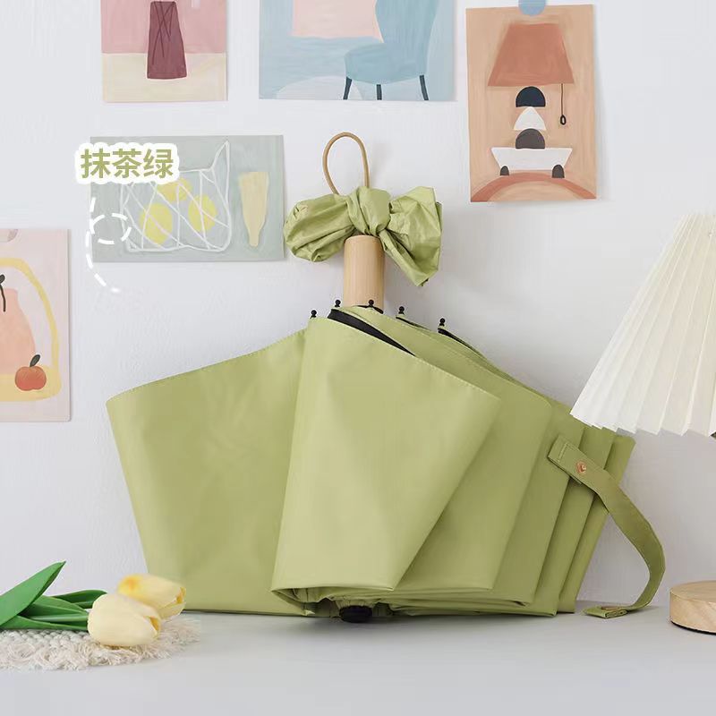 단색 단색 나무 손잡이 3 배 우산 간단한 패션 맑고 비오는 이중 목적 검은 고무 접는 우산 높은 색상 가치 차양 자외선 차단제 우산