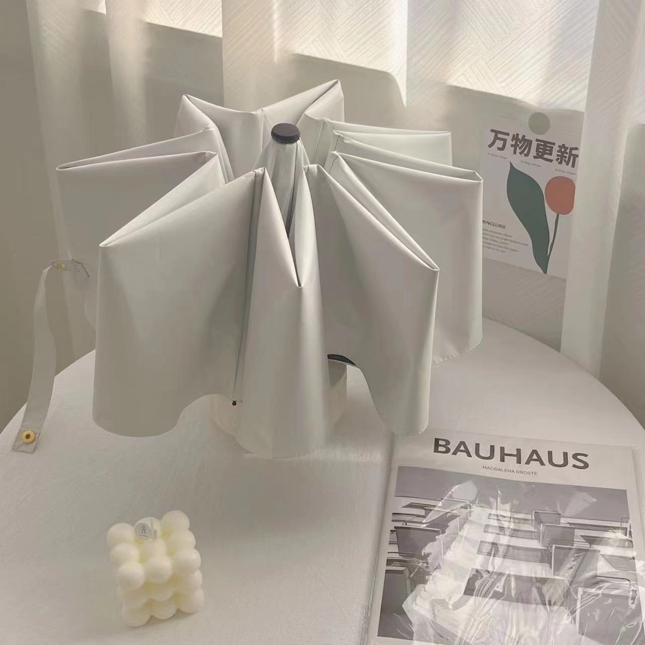 • 이중 섬유 방풍 제로 투명 슈퍼 태양 보호 써니 우산 쌀 화이트