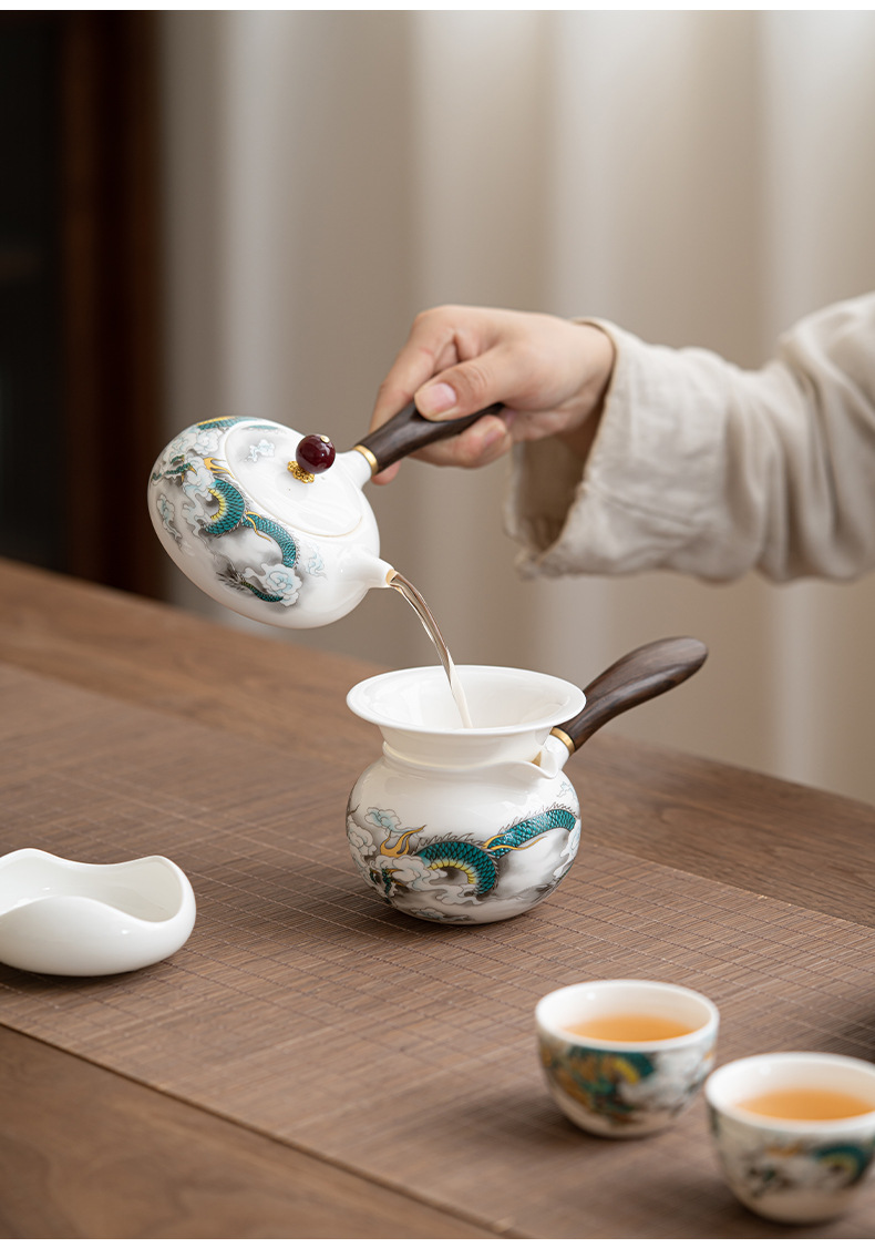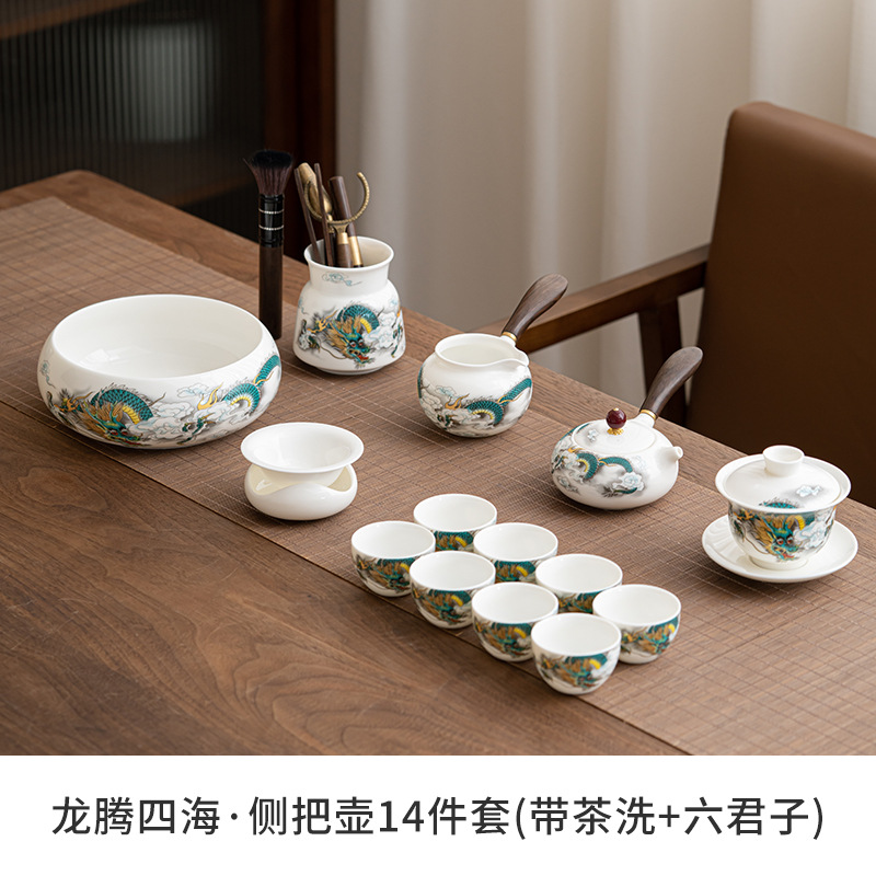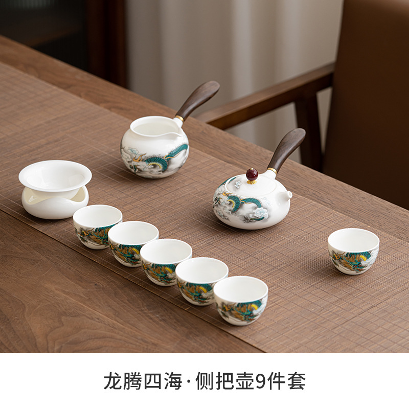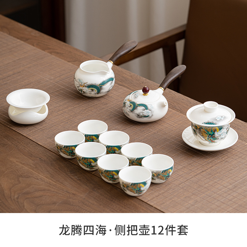 Chenxiang 매트 뚱뚱한 옥 쿵푸 차 세트 세트 가정 거실 사무실 측 찻 주전자 Dehua 백색 도자기 커버 그릇 찻잔