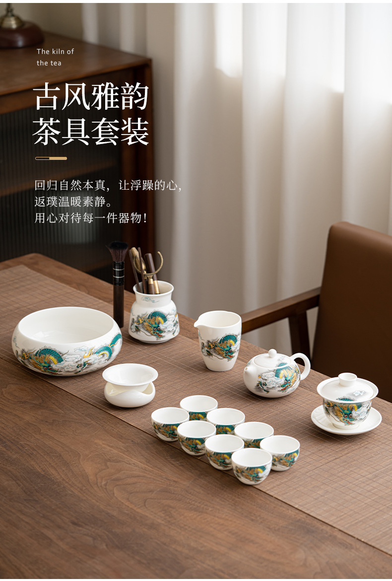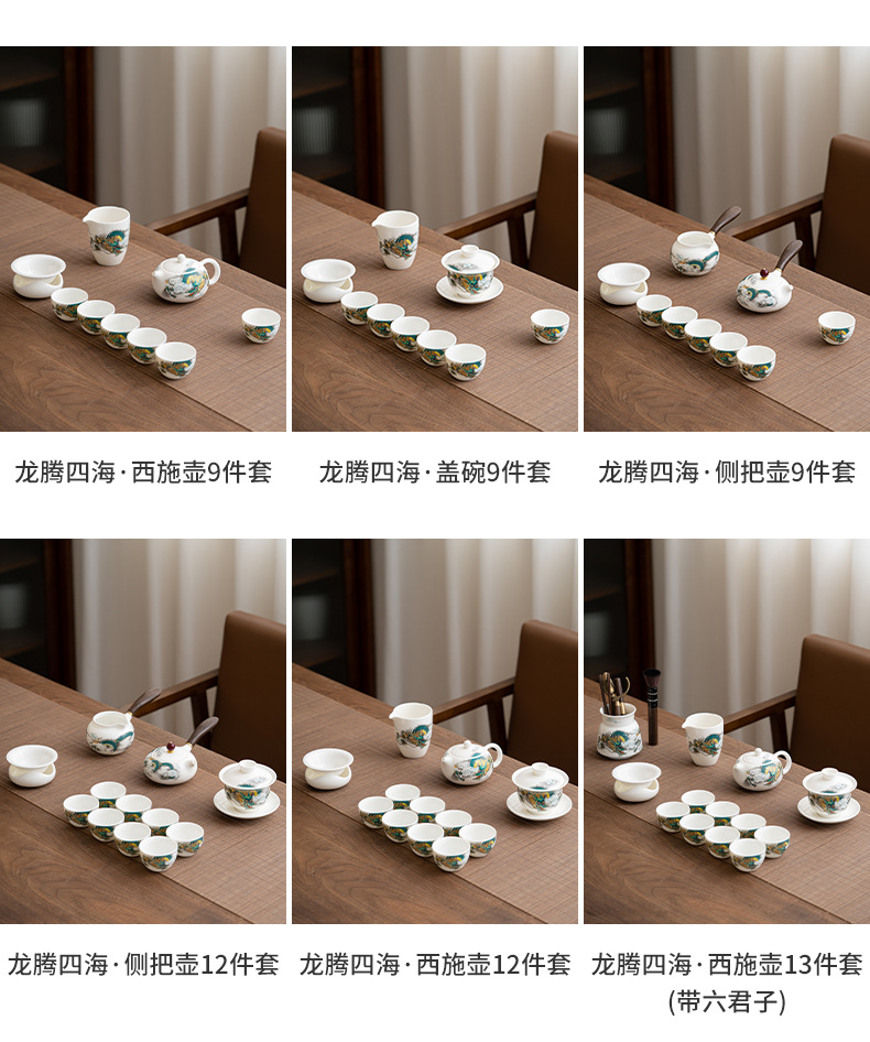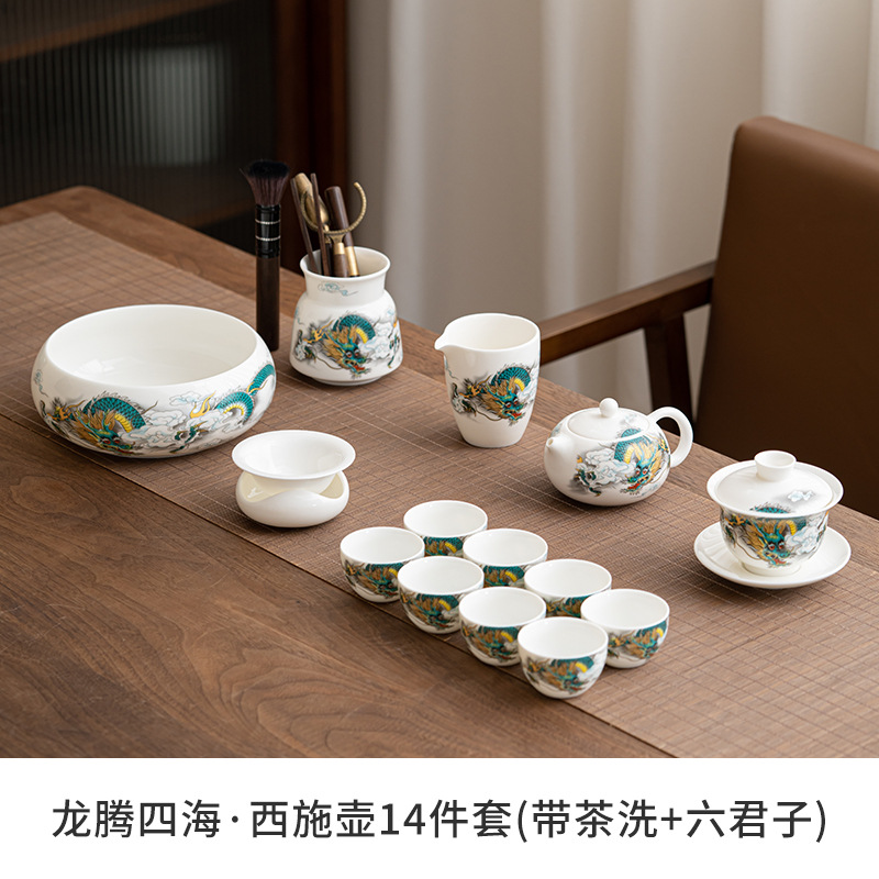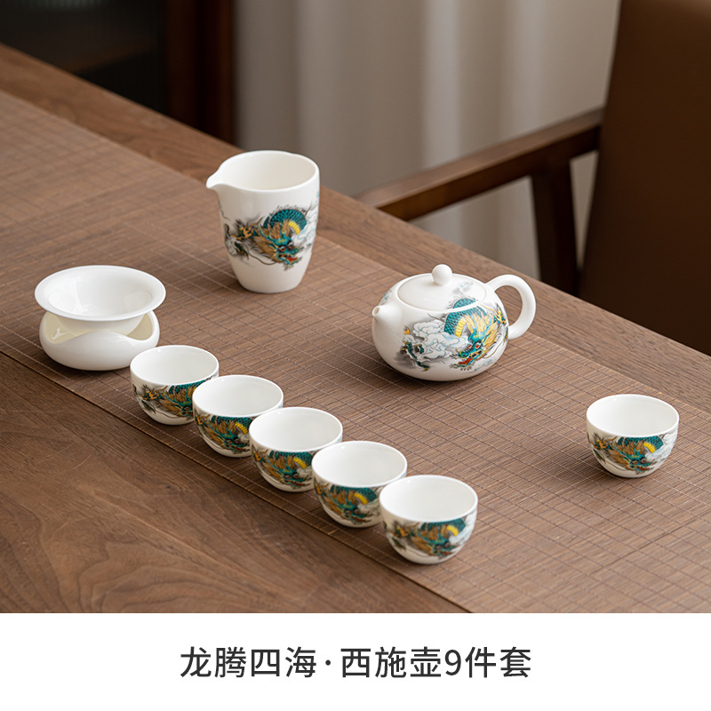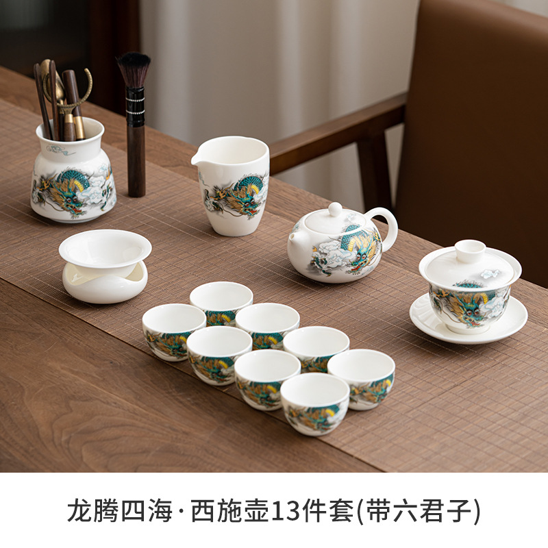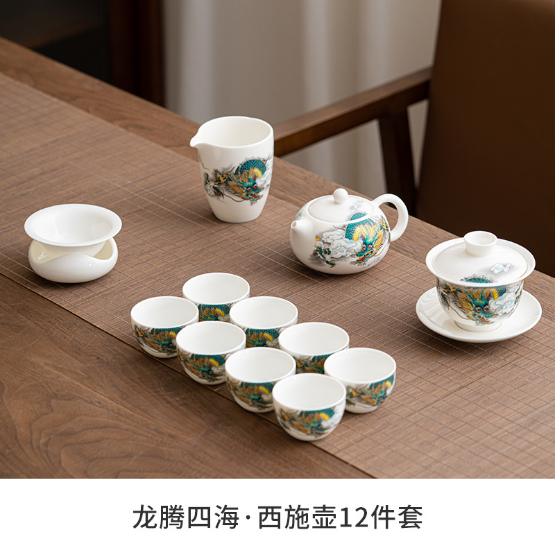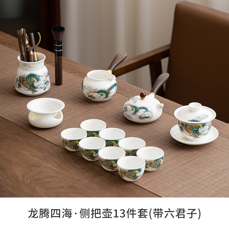 Chenxiang 매트 뚱뚱한 옥 쿵푸 차 세트 세트 가정 거실 사무실 측 찻 주전자 Dehua 백색 도자기 커버 그릇 찻잔스토어 가기
