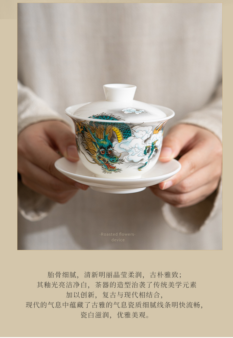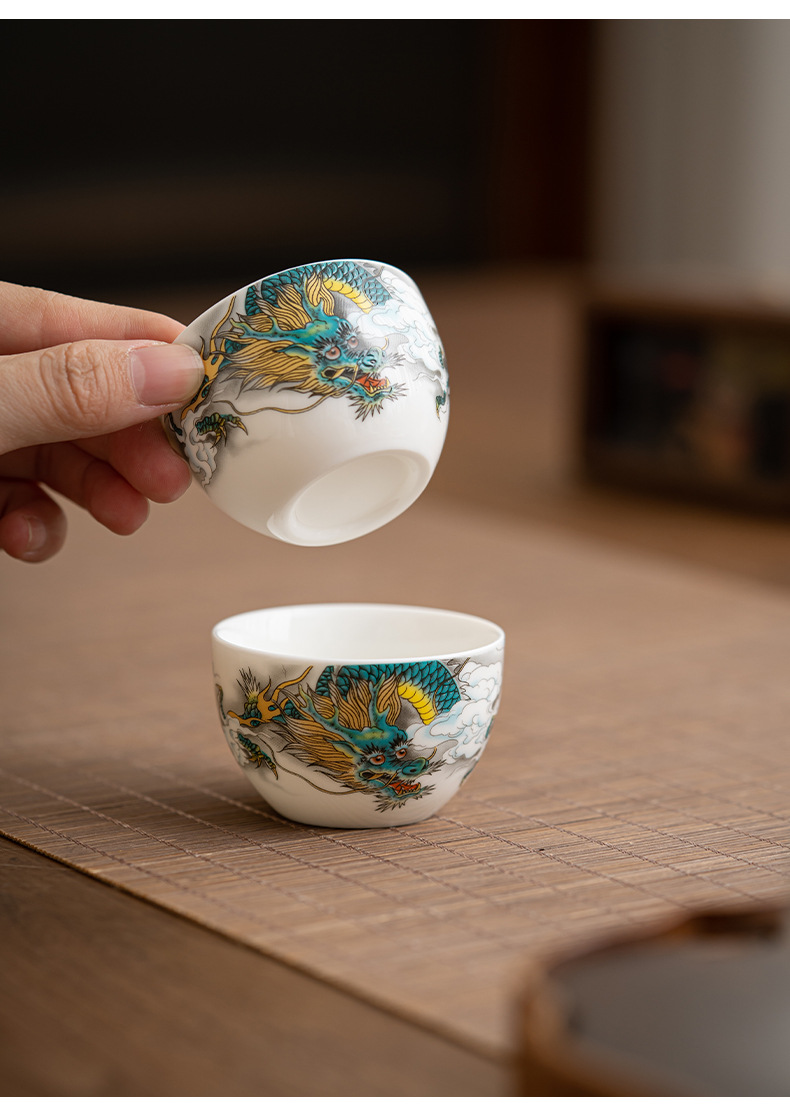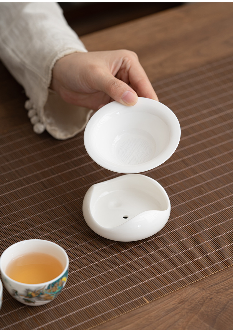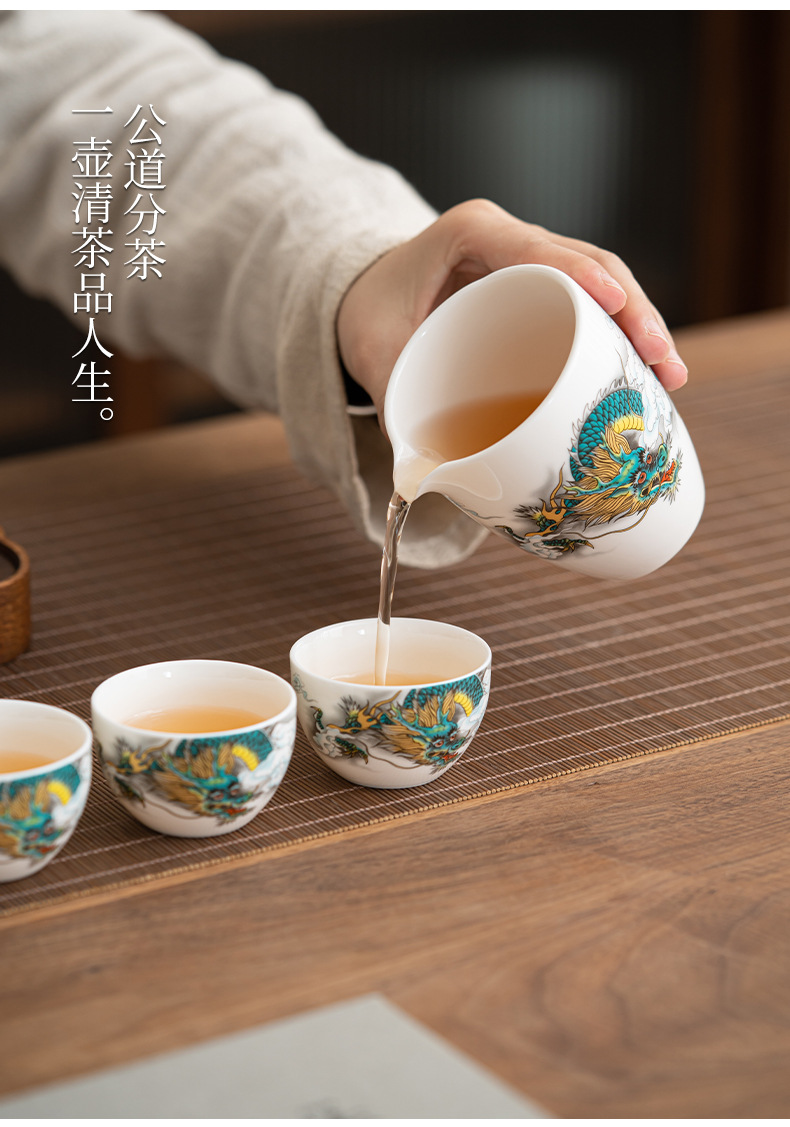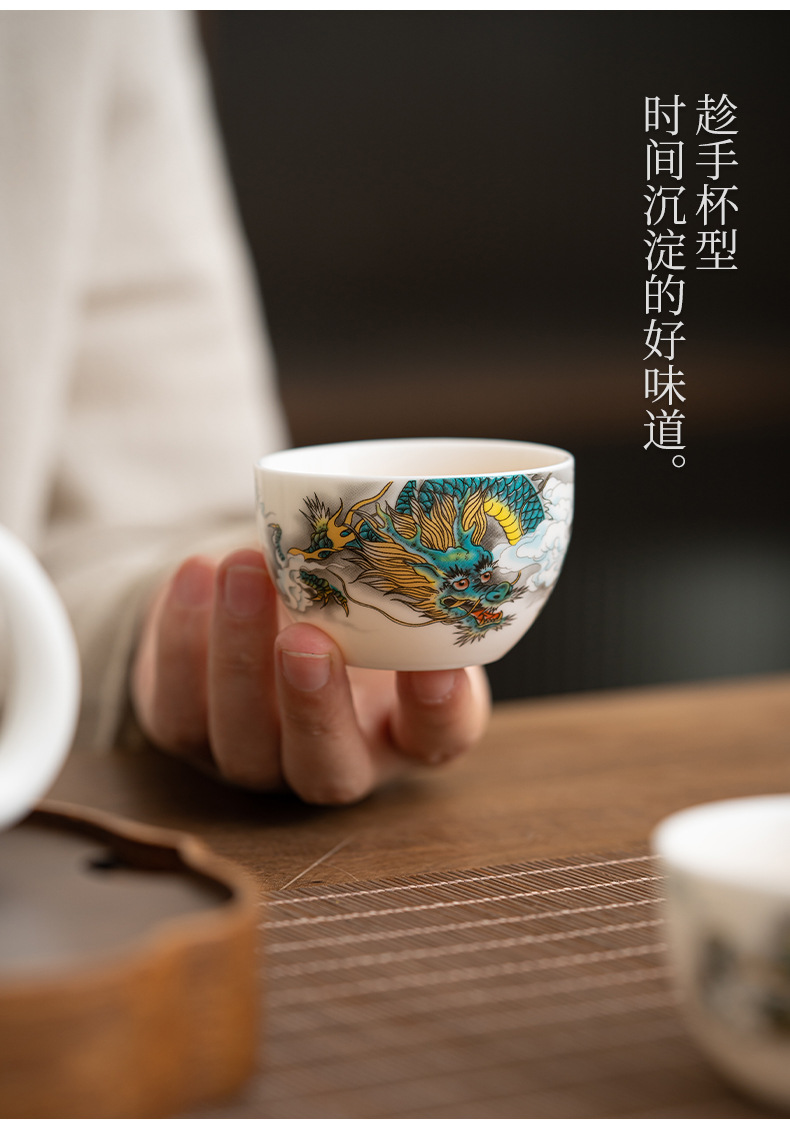 Chenxiang 매트 뚱뚱한 옥 쿵푸 차 세트 세트 가정 거실 사무실 측 찻 주전자 Dehua 백색 도자기 커버 그릇 찻잔스토어 가기