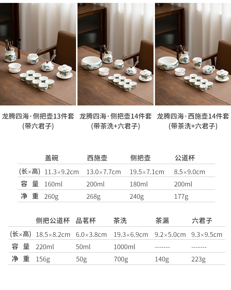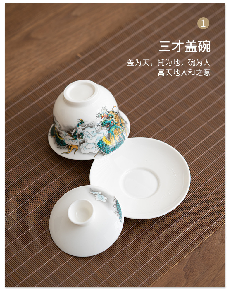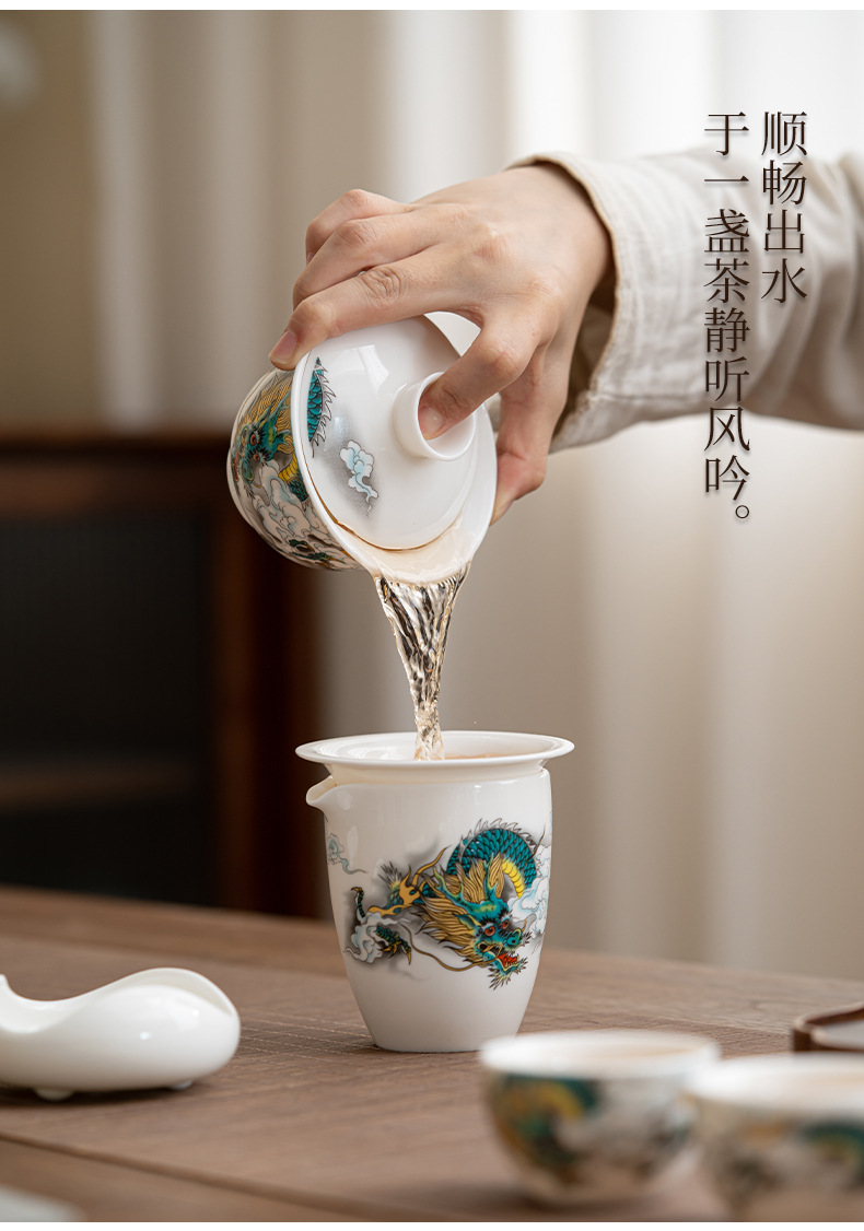 • Longteng Sihai-[8 컵] 주전자 + 덮인 그릇 + 다도 세트