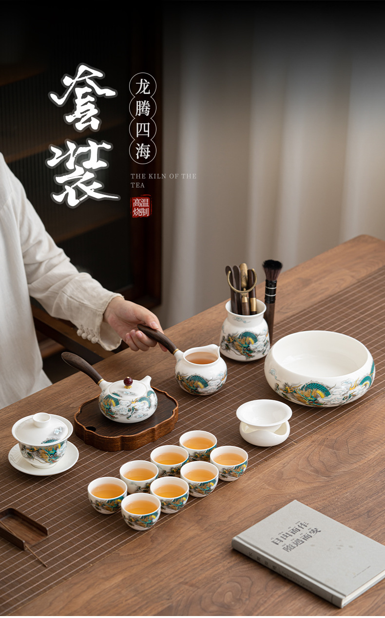 • Longteng Sihai-[8 컵] 찻주전자 + 덮인 그릇 + 다도 + 차 세척 세트