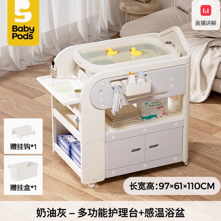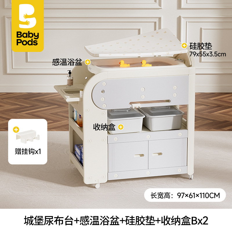 • 【플래그십 모델】 babypods 다기능 기저귀 교환대 + 온도 감지 욕조 + 실리콘 패드 + 수납함 * 2