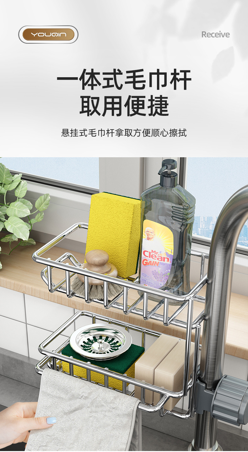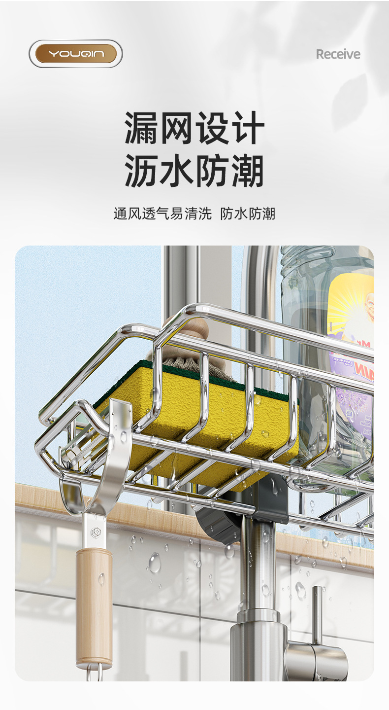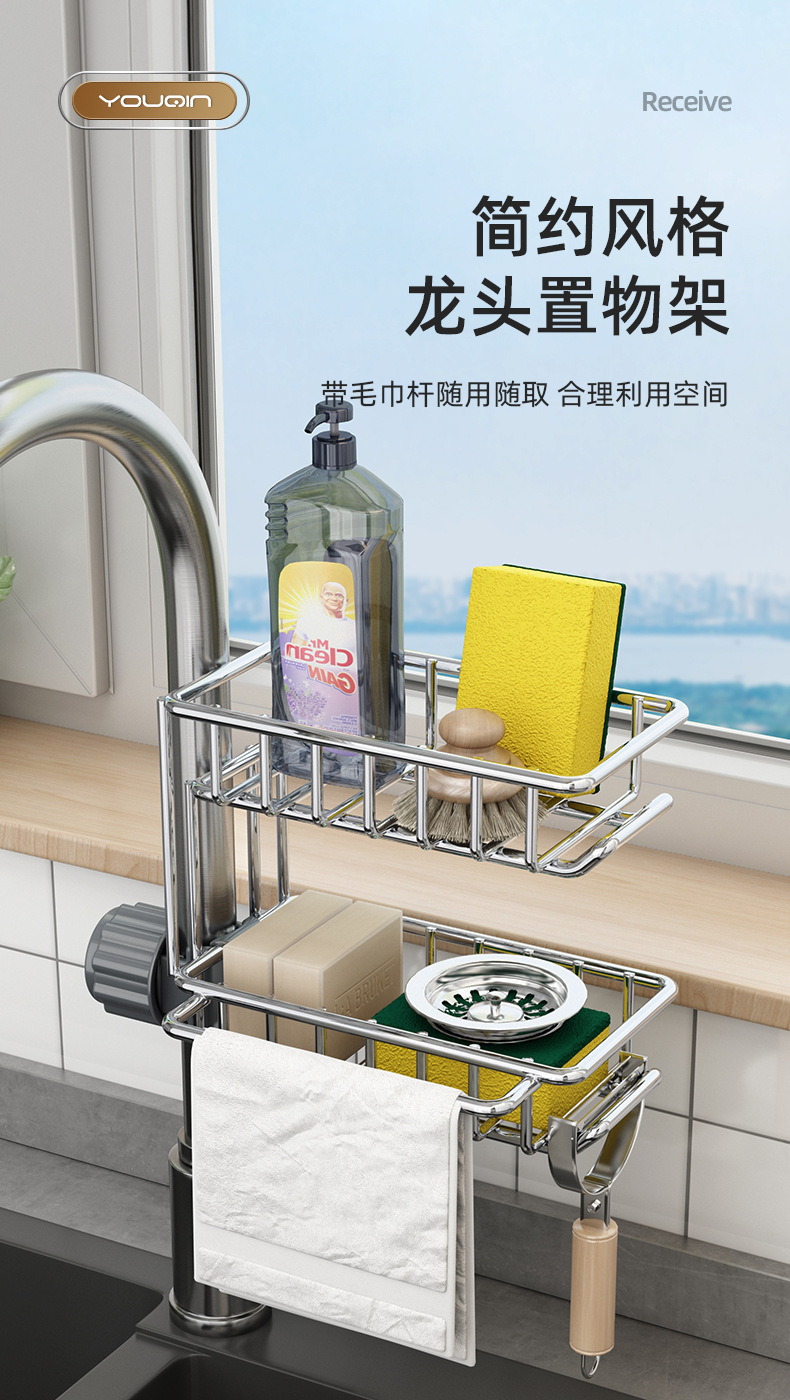 스테인레스 스틸 주방 수도꼭지 보관 랙 식기 세척기 싱크 탱크 랙 배수 바구니 스폰지 브러쉬 걸레 보관 랙