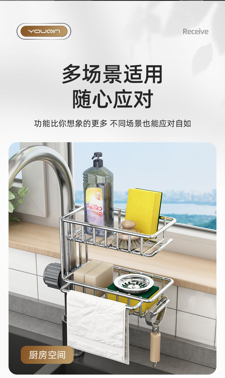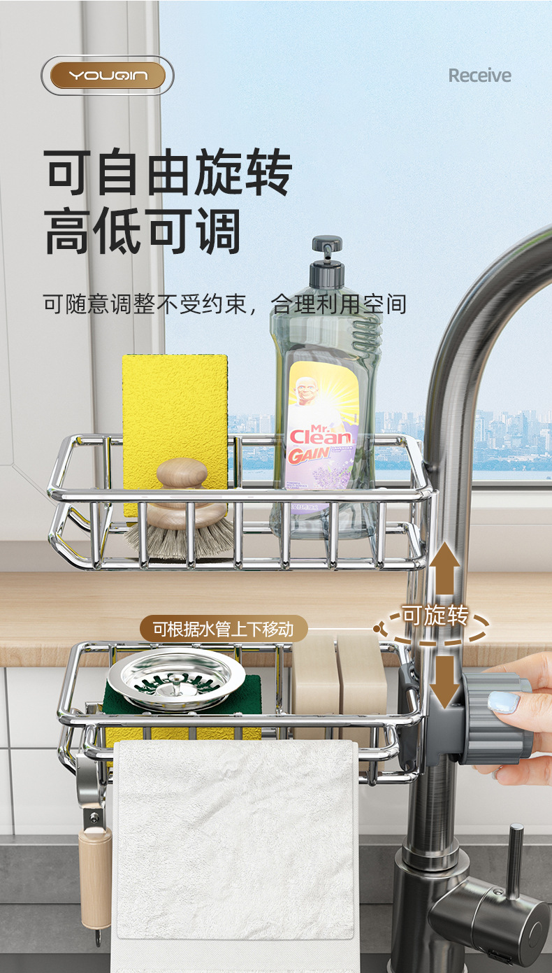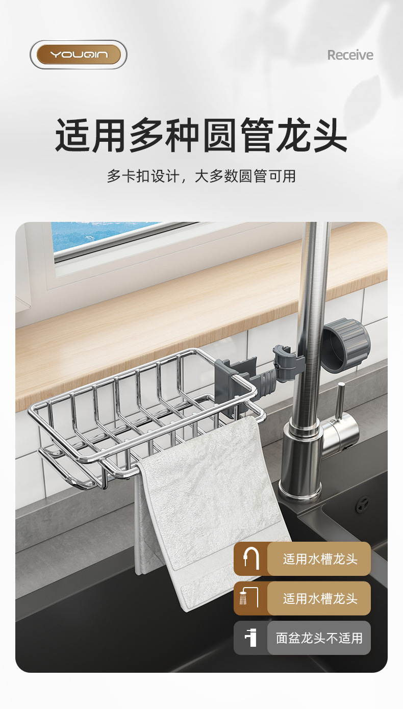 스테인레스 스틸 주방 수도꼭지 보관 랙 식기 세척기 싱크 탱크 랙 배수 바구니 스폰지 브러쉬 걸레 보관 랙