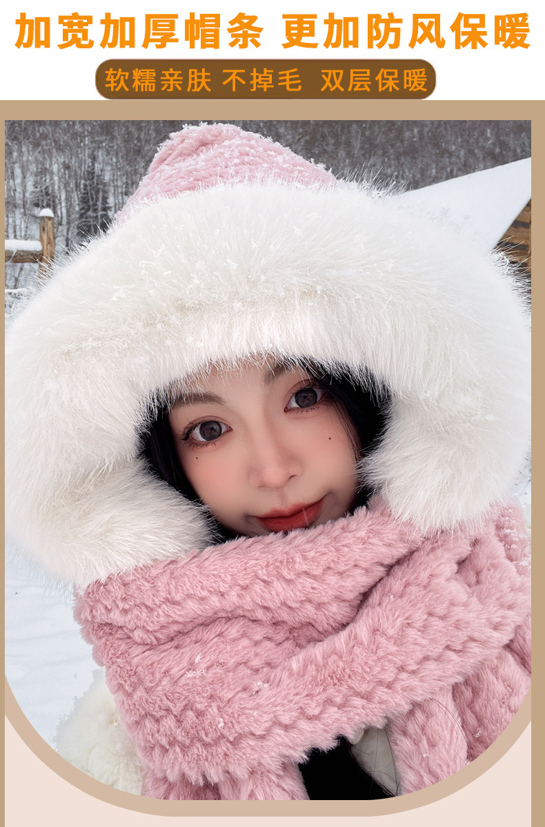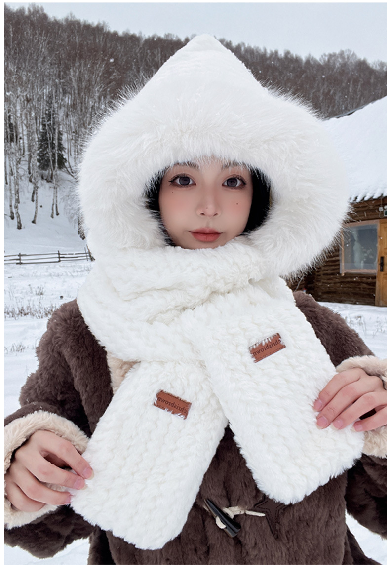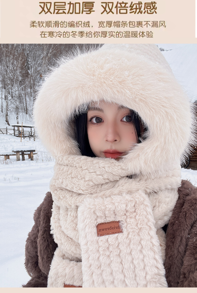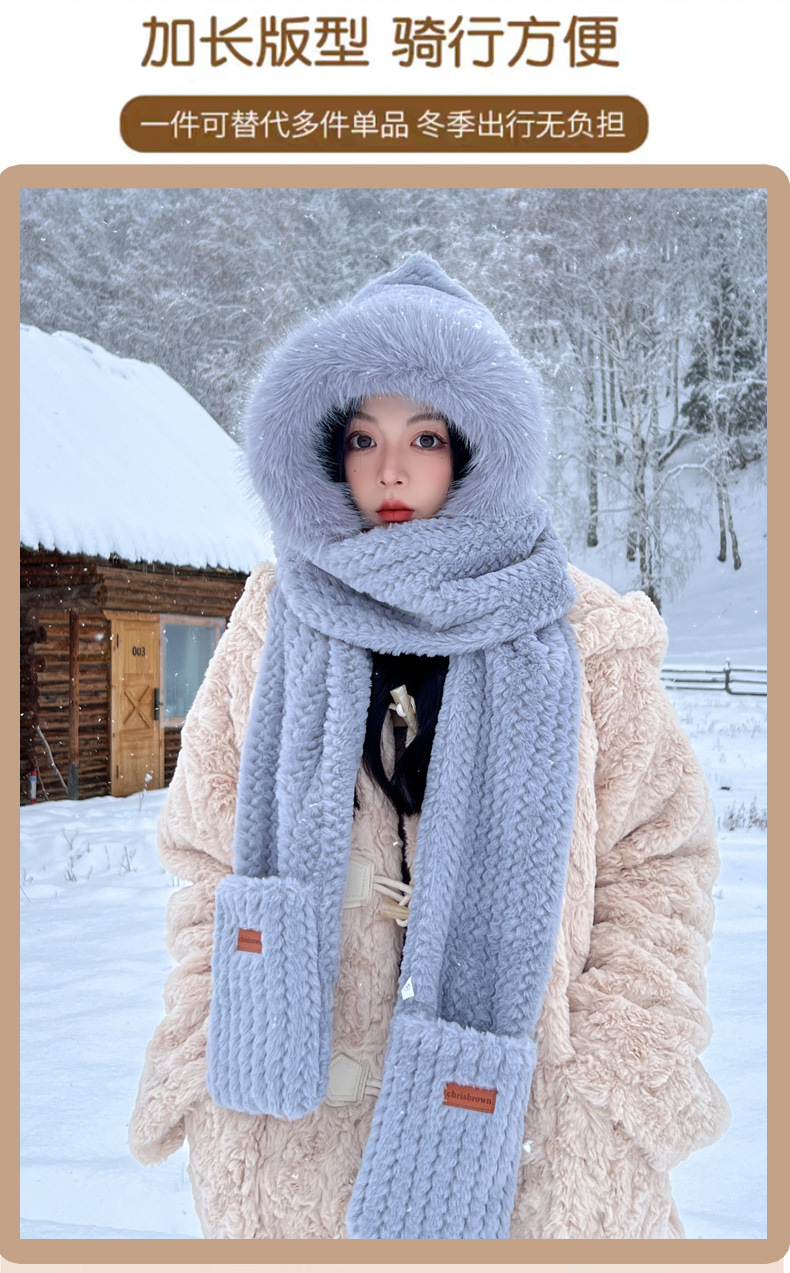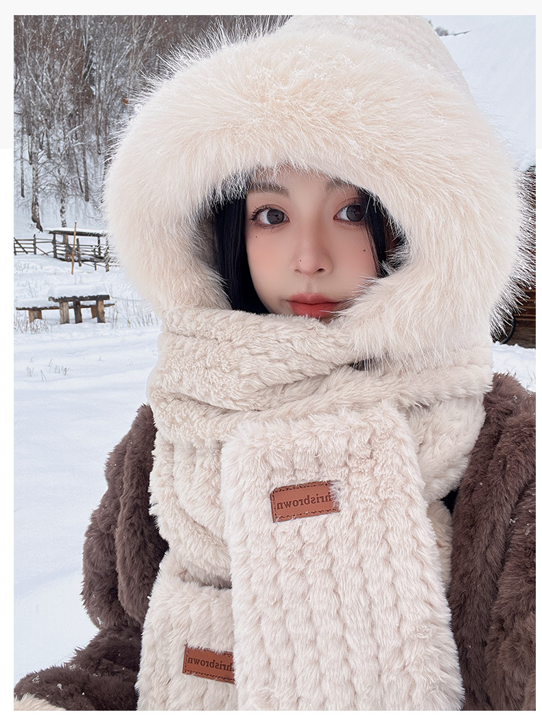 곰 플러시 모자와 스카프 일체형 여성용 겨울 귀여운 가을 겨울 장갑 3종 세트 따뜻한 2024 새로운 스타일