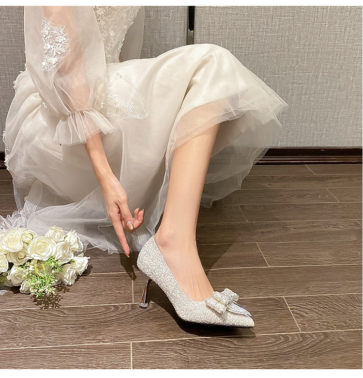 316-A162 진주 활 들러리 하이힐 메인 웨딩 원피스 스몰 사이즈 플러스 사이즈 확장 된 신부 웨딩 신발