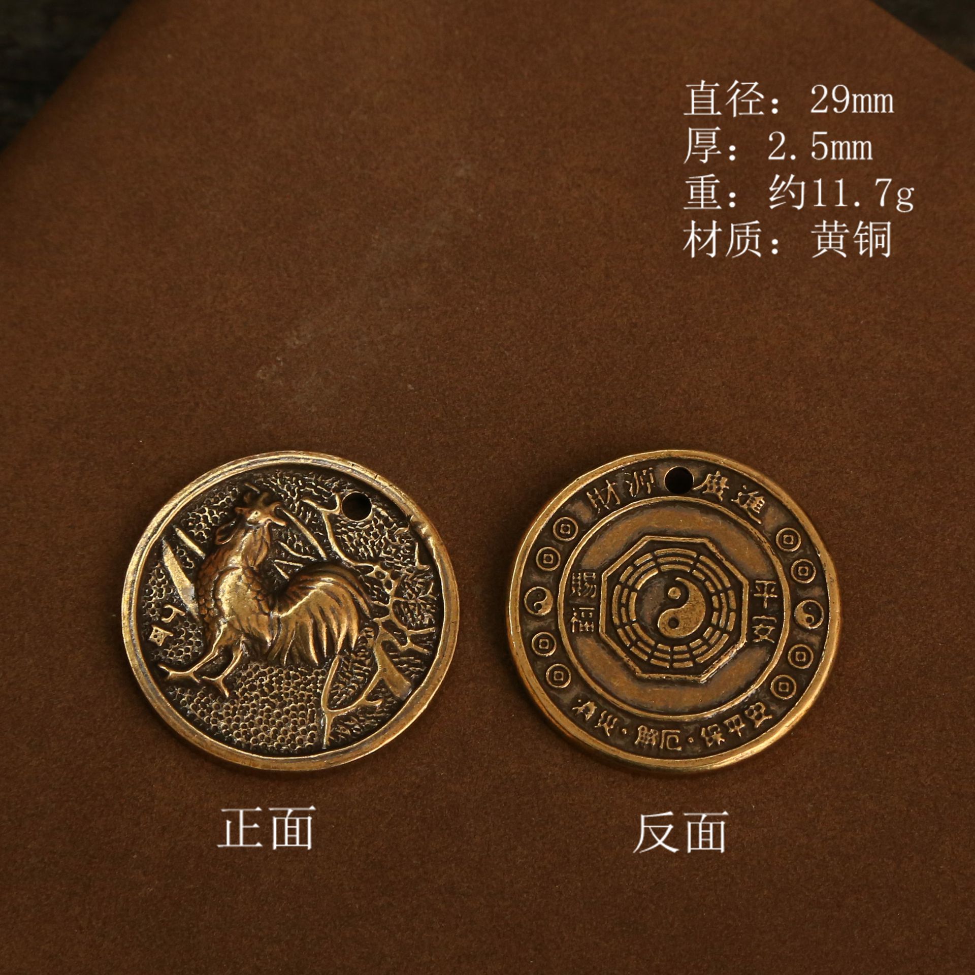 황동 8 다이어그램 조디악 라운드 키 체인 펜던트 다섯 황제 돈 호이스트 펜던트 남자와 여자의 가방 자동차 키 펜던트