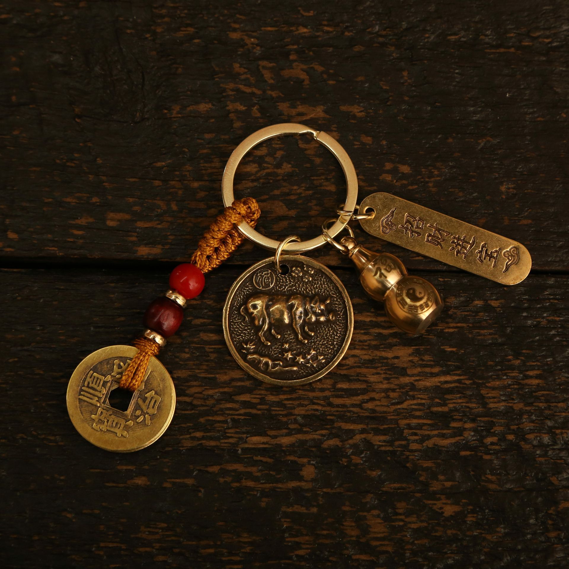 황동 8 다이어그램 조디악 라운드 키 체인 펜던트 다섯 황제 돈 호이스트 펜던트 남자와 여자의 가방 자동차 키 펜던트스토어 가기