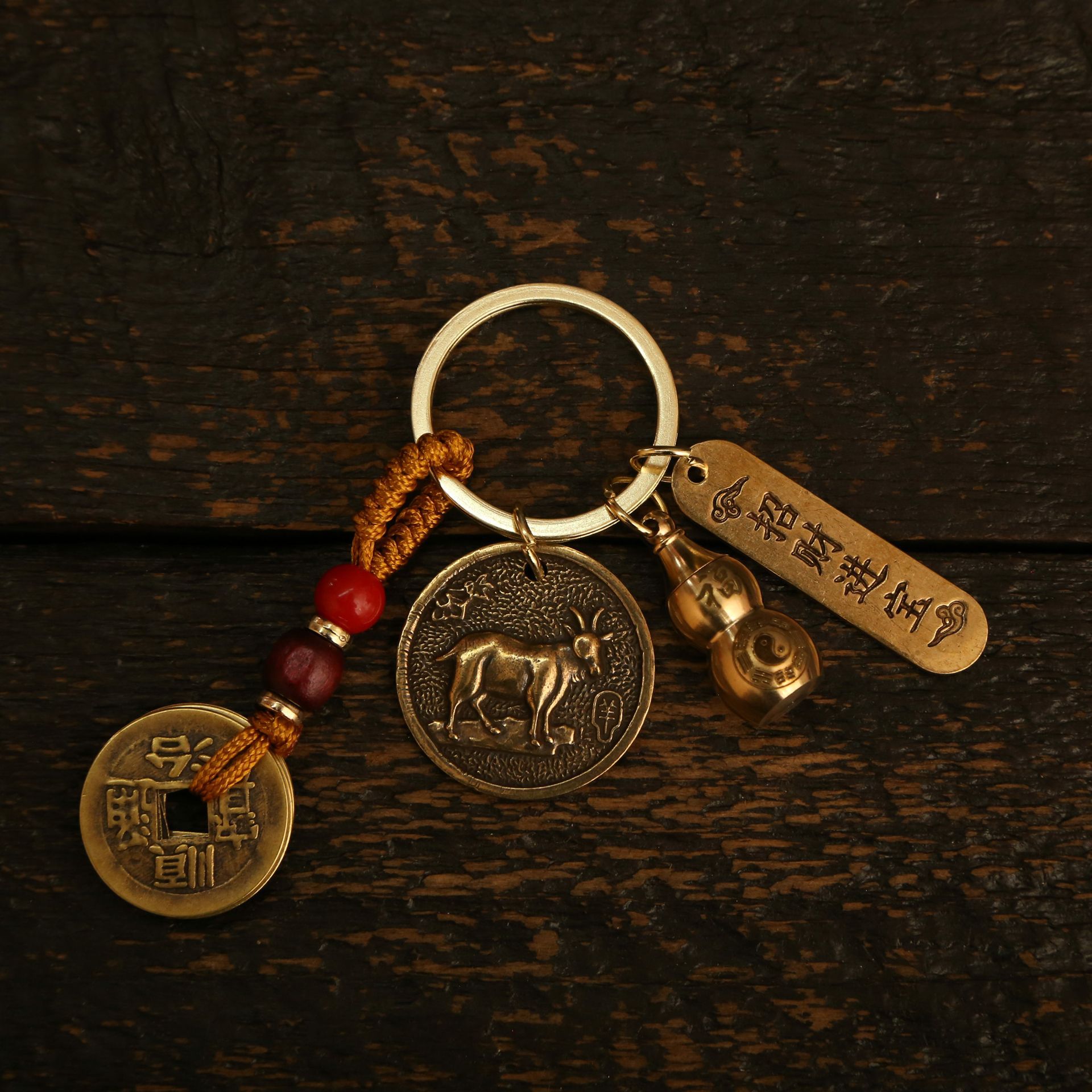 • 조디악 양-Bagua 라운드 카드 + 노란 밧줄 다섯 황제 돈 + Bagua 조롱박 + 행운의 보물 Xiangyun 카드