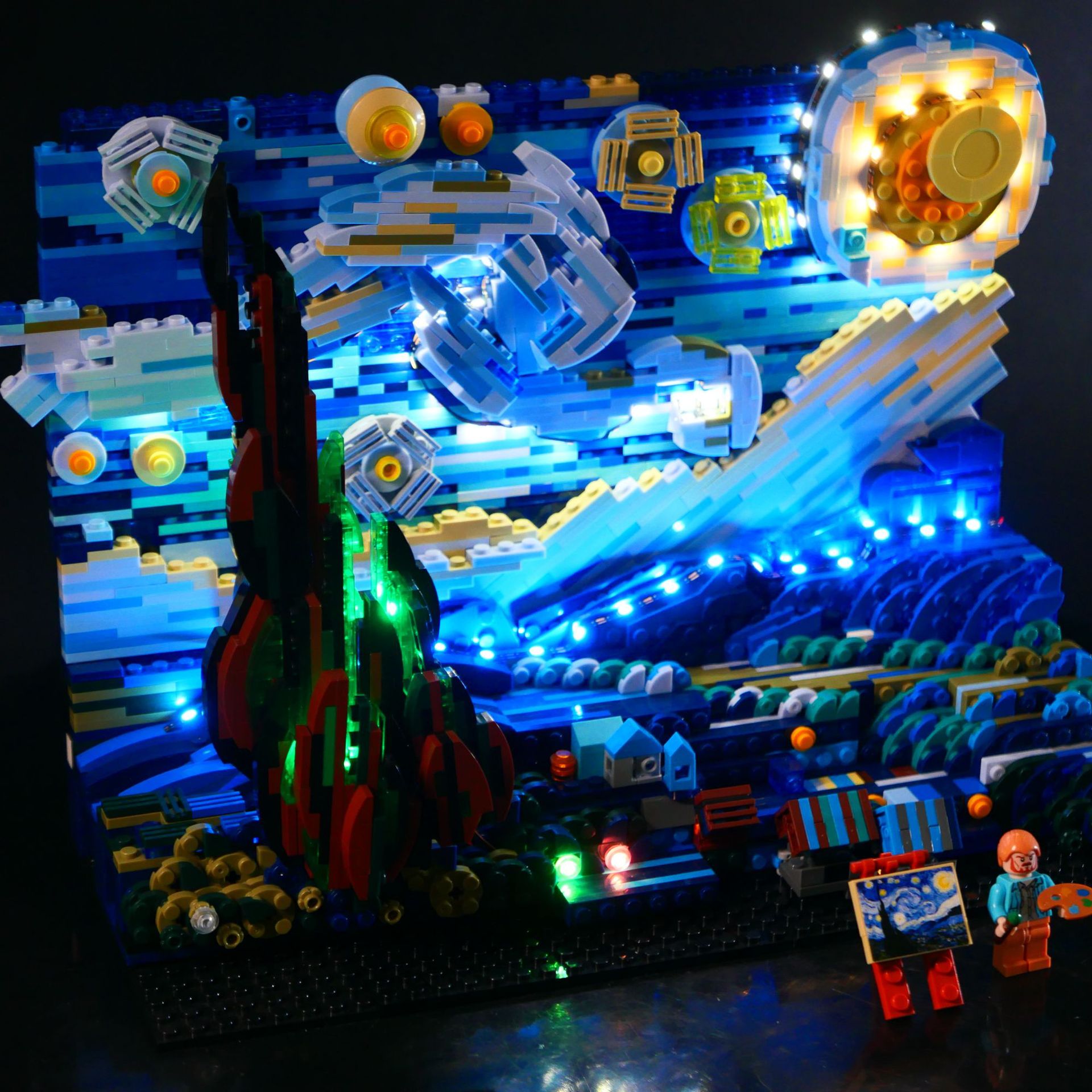 LP 빌딩 블록 DK3001 반 고흐 별이 빛나는 밤 창조적 인 그림 DIY 원격 제어 조명 LED 조명 어셈블리에 적합한 조명스토어 가기