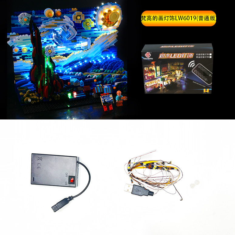 • 반 고흐 별이 빛나는 하늘 그림 USB 버전 빛 + 배터리 상자 (조명 전용) 빌딩 블록없이