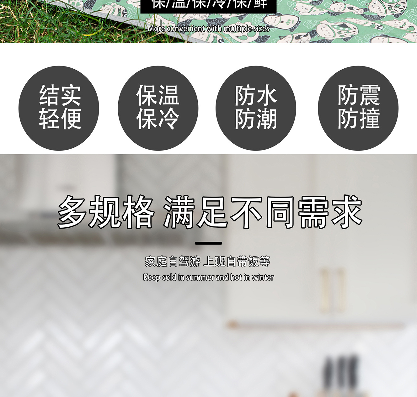 신사각 보온 백 도매 옥외 휴대용 도시락 가방 대형 아이스 백 크로스 보더 핫 런치 백 단열 백