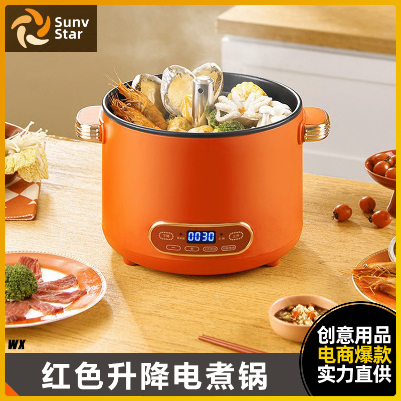 리프팅 전기 밥솥 레드 3L 지능형 다기능 소형 전기 밥솥 가정용 기숙사 요리 통합 자동 전기 냄비