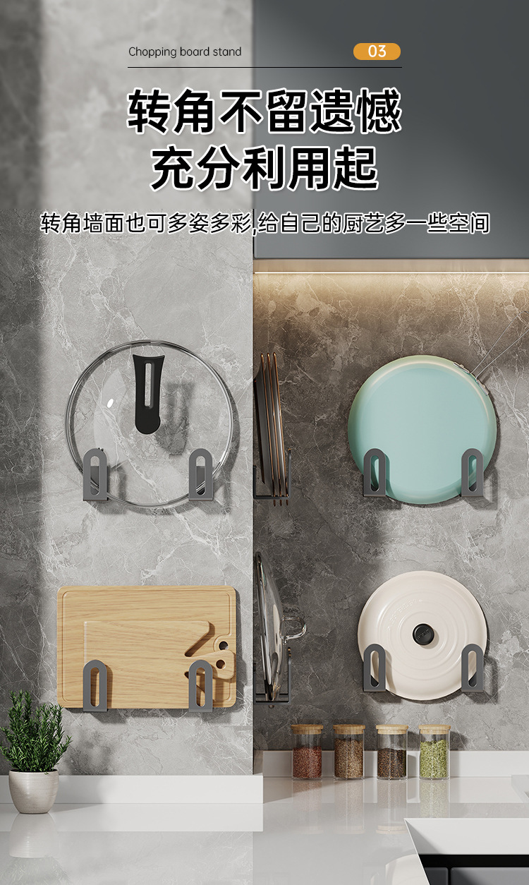 펀치 없는 냄비 커버 랙 벽걸이 도마 주방 수납 랙 다기능 벽 수납 아티팩트 랙
