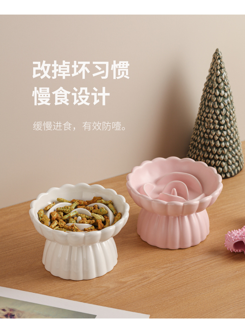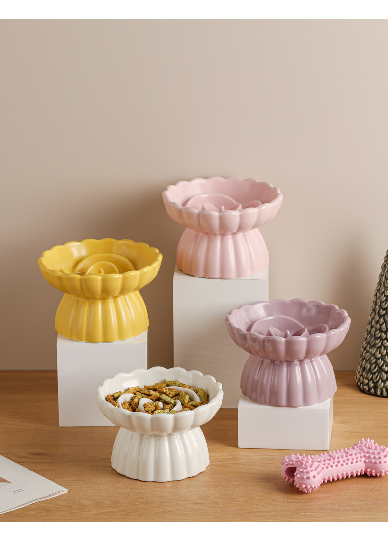 애완 동물 그릇 고양이 음식 그릇 슬로우 푸드 그릇 높은 발 고양이 그릇 구토 보호 상승 척추 고양이 음식 그릇 세라믹 그릇스토어 가기