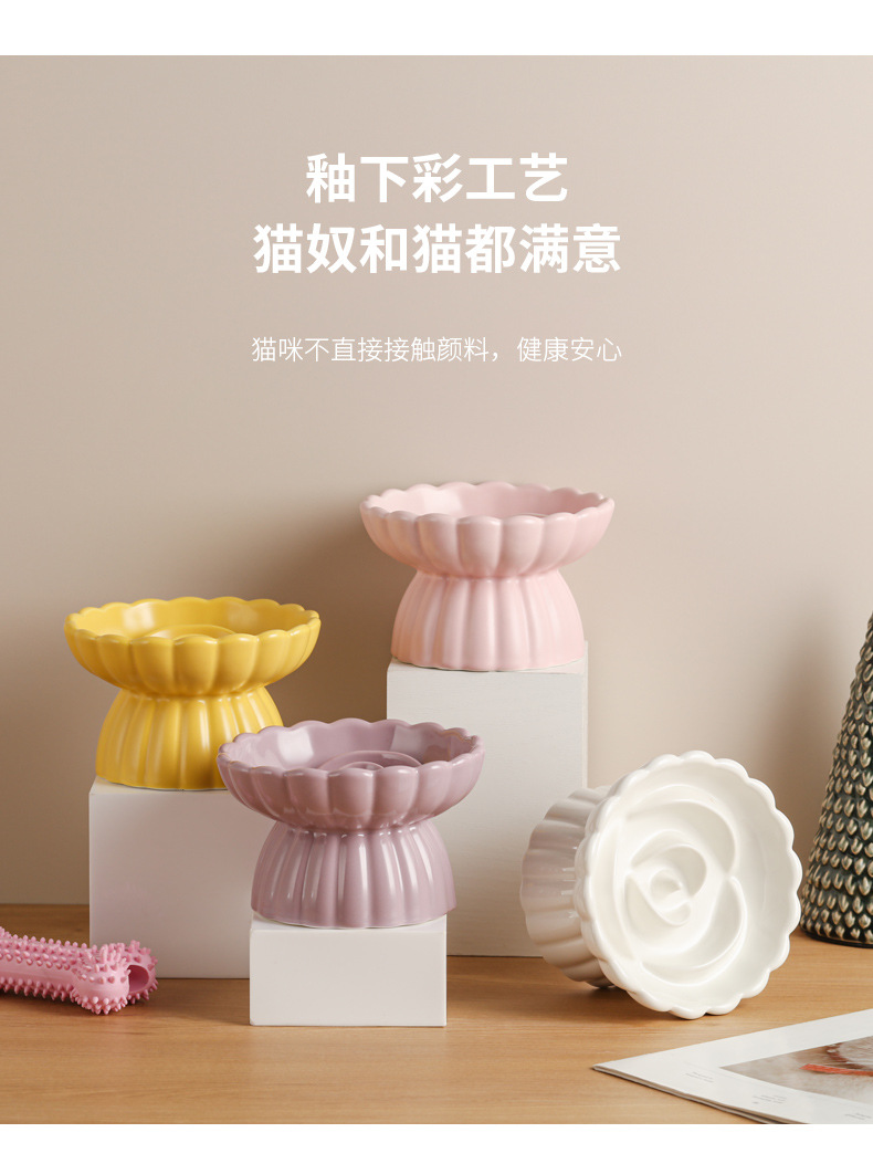애완 동물 그릇 고양이 음식 그릇 슬로우 푸드 그릇 높은 발 고양이 그릇 구토 보호 상승 척추 고양이 음식 그릇 세라믹 그릇