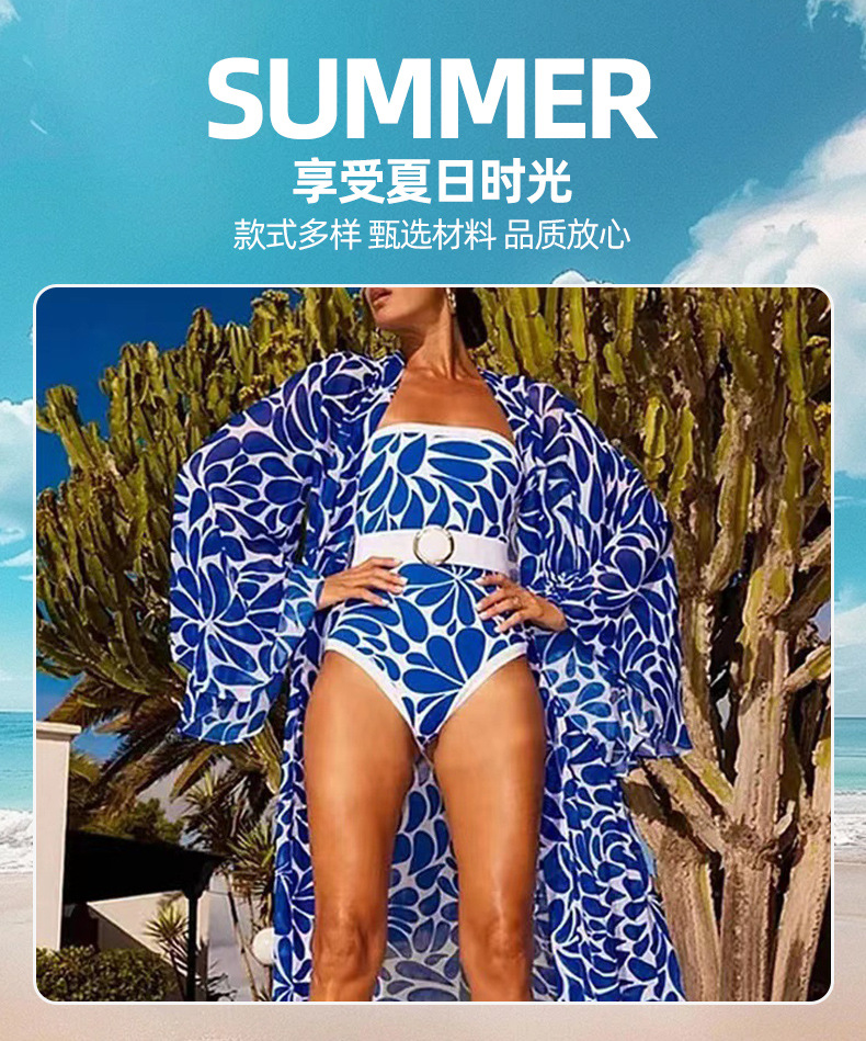 2023 아마존 AliExpress 새로운 패션 프린트 원피스 수영복 여성용 프랑스 레트로 스파 휴가 수영복스토어 가기